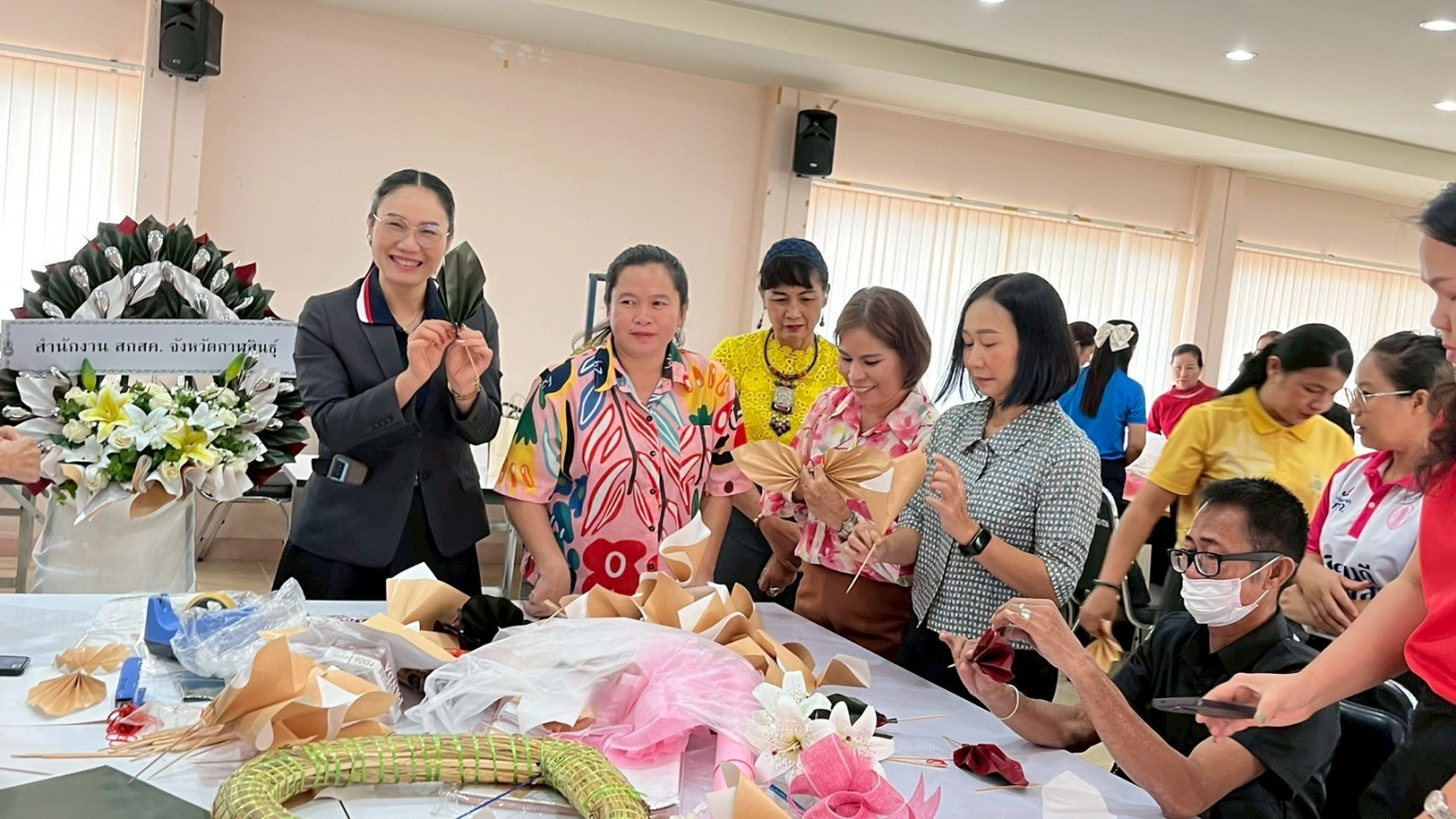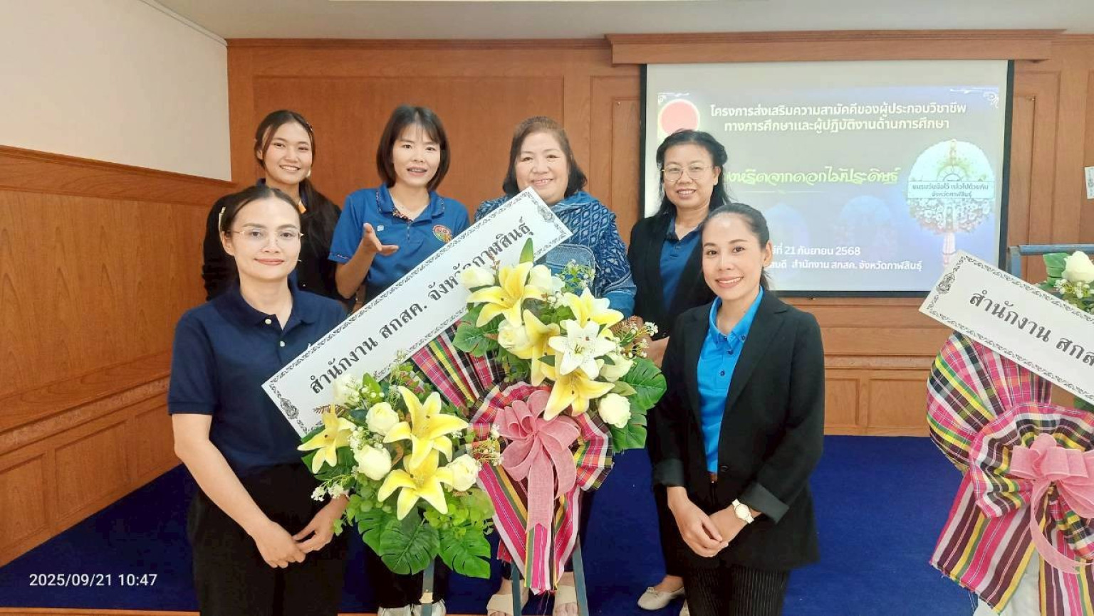 วันที่ 21 กันยายน 2568 ที่สำนักงานส่งเสริมสวัสดิการและสวัสดิภาพครูและบุคลากรทางการศึกษา จ.กาฬสินธุ์ (สกสค.) ว่าที่ร้อยตรีสุรสิทธิ์ ถิตย์สมบูรณ์ ผู้อำนวยการสำนักงานเขตพื้นที่การศึกษาประถมศึกษา (สพป.) กาฬสินธุ์ เขต 1 กรรมการ สกสค.จังหวัด รักษาการแทนผู้อำนวยการสำนักงาน สกสค.จ.กาฬสินธุ์ เป็นประธานจัดกิจกรรมการทำพวงหรีดจากดอกไม้ประดิษฐ์ โดยมีนางสาวทศพร ทักษิมา รอง ผอ.สพป.กส.เขต 2, นายสุริยันต์ จุนใจ ผู้อำนวยการสำนักงานส่งเสริมการเรียนรู้ อ.เมืองกาฬสินธุ์, นายพจนารถ ภูสาริ นายกสมาคมผู้บริหารสถานศึกษาเอกชน จ.กาฬสินธุ์ ผู้รับใบอนุญาต ผู้อำนวยการ ผู้จัดการโรงเรียนรวมบัณฑิตศึกษา, นางสาวปัทมาพร สำราญรื่น ผู้ช่วยเลขานุการ สกสค.จ.กาฬสินธุ์ และกรรมการ สกสค. ผู้มีส่วนเกี่ยวข้องร่วมกิจกรรมอย่างพร้อมเพรียง