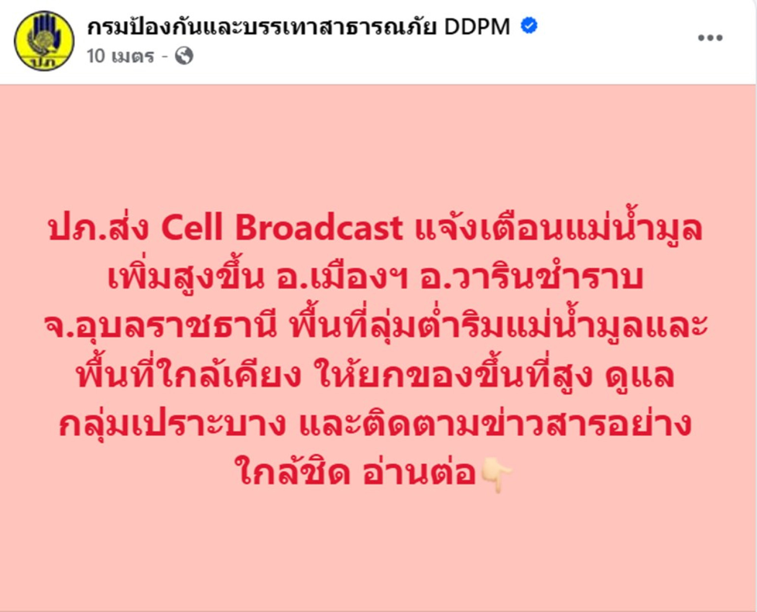 #ปภ #เตือนภัยน้ำท่วม #อุบลราชธานี #น้ำมูล #CellBroadcast #น้ำท่วมฉับพลัน #ข่าววันนี้