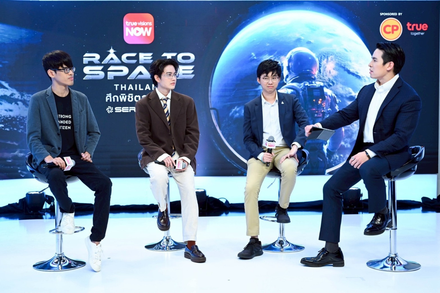บรรยากาศภายในงานพิธีกรกล่าวต้อนรับ คุณองอาจ ประภากมล หัวหน้าสายงานทรูวิชั่นส์และมีเดีย บมจ.ทรู คอร์ปอเรชั่น ร่วมด้วยพันธมิตรบุคคลสำคัญ Deepak Dhar ผู้ก่อตั้งและประธานเจ้าหน้าที่บริหาร กลุ่มบริษัท Banijay Asia, Endemol Shine India, Joshua Skurla Co-Founder จาก SERA, และ CreAsia Studio ผู้ผลิตรายการ, Jessica EVP,CreAsia ผู้สนับสนุนรายการ, คุณอนรรฆวี ชูรัตน์ ผู้บริหารสูงสุด สายงานการตลาดกลาง บริษัท เจริญโภคภัณฑ์อาหาร จำกัด (มหาชน) หรือ ซีพีเอฟ, คุณโอลิเวอร์ กิตติพงษ์ วีระเตชะ หัวหน้าคณะผู้บริหารด้านแบรนด์และมีเดีย บมจ. ทรู คอร์ปอเรชั่น อีกทั้ง คุณกอล์ฟ พิชญะ นิธิไพศาลกุล นักแสดง, คุณกรทอง วิริยะเศวตกุล นักสื่อสารดาราศาสตร์, คุณเติ้ล ณัฐนนท์ ดวงสูงเนิน บรรณาธิการบริหาร และผู้ร่วมก่อตั้ง spaceth.co