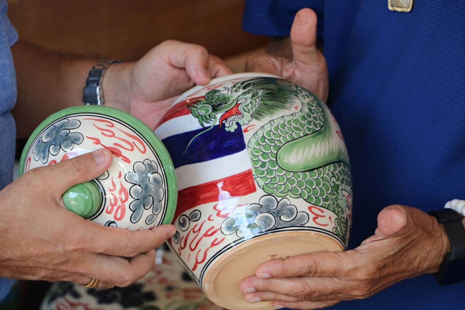 เจ้าของโรงโอ่งรัตนโกสินทร์เซรามิกซ์ 4 จ.ราชบุรี ปั้นโอ่งเขียนลายสีธงชาติ เวอร์ชั่นใหม่ล่าสุด เป็นของฝาก ของที่ระลึกเพื่อร่วมกันเชิดชู สถาบันชาติและแผ่นดินไทย