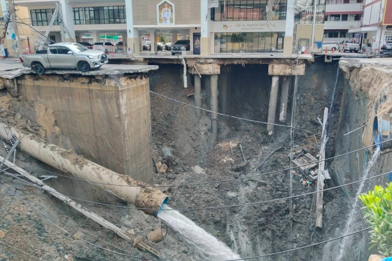 วันที่ 24 กันยายน 2568 เวลา 10.00 น. นายชัชชาติ สิทธิพันธุ์ ผู้ว่าราชการกรุงเทพมหานคร กล่าวความคืบหน้าเหตุการณ์ผิวจราจรบริเวณหน้าวชิรพยาบาล ถนนสามเสน เขตดุสิต เกิดการทรุดตัว ว่า จุดนี้เป็นการก่อสร้างรถไฟฟ้าสายสีม่วงใต้ วิ่งจากรัฐสภาไปทางสามเสนลอดแม่น้ำเจ้าพระยาถึงย่านสุขสวัสดิ์ โดยอุโมงค์รถไฟใต้ดินดังกล่าว มีสองอุโมงค์สวนทางกัน แบ่งเป็นสองระดับ คือต่ำลงไปในดิน -15 เมตร และ -30 เมตร เส้นผ่าศูนย์กลางของอุโมงค์มีขนาดประมาณ 6.5 เมตร จุดที่เกิดเหตุเป็นสถานี คล้ายกล่องลึกลงไปใต้ดิน ประมาณ 30 เมตร และมีอุโมงค์รถไฟมาเชื่อมกับตัวสถานี ซึ่งจุดเชื่อมต่อดังกล่าวเป็นจุดอ่อน เข้าใจว่าอุโมงค์ด้านบนเกิดความเสียหาย ทำให้ดินไหลลงไปในสถานี จึงทำให้เกิดช่องว่างประมาณ 30 เมตรคูณ 30 เมตรลึกประมาณ 15 เมตร ทำให้ถนนด้านบนทรุดตัวลง ทำให้ดึงโครงสร้างอื่นๆทรุดไปด้วย เช่น เสาไฟฟ้า ท่อประปา ทำให้น้ำยิ่งชะดินลงไปในอุโมงค์มากขึ้น ปัจจุบันสถานการณ์เริ่มนิ่งแล้ว ด้านโครงสร้างโรงพยาบาลไม่น่ามีปัญหาเพราะมีเสาเข็มลึก ส่วนสน. สามเสนค่อนข้างน่าเป็นห่วงเพราะไม่มีกำแพงกันดิน อยู่ระหว่างประเมินสถานการณ์และเร่งดำเนินการ