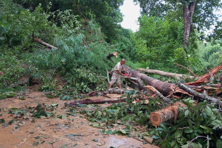 เมื่อวันที่ 24 กันยายน 2568 เวลา 08.40 น. ว่าที่พันตรียุทธนา เจ้าดูรี นายอำเภอเมืองแม่ฮ่องสอน จ.แม่ฮ่องสอน ได้รับรายงานจาก อส.ด่านตรวจบ้านน้ำเพียงดิน ต.ผาบ่อง อ.เมืองแม่ฮ่องสอน ว่าได้เกิดเหตุต้นไม้และหินดิน สไลด์ลงปิดทับเส้นทาง ทางหลวงชนบท มส. 3015 ระหว่าง แยกเข้าบ้านห้วยปูแกง - ด่านตรวจ บ้านน้ำเพียงดิน ต.ผาบ่อง อ.เมืองแม่ฮ่องสอน โดยทางเจ้าหน้าที่ อส.และเจ้าหน้าที่ทหารจาก ร้อย.ร.751 ฐานน้ำเพียงดิน ได้ร่วมมือกันตัดต้นไม้และเคลียร์ก้อนหินและดินออกจากผิวถนน ทำให้รถสามารถวิ่งผ่านได้แล้ว เมื่อเวลาประมาณ 09.00 น.ที่ผ่านมา