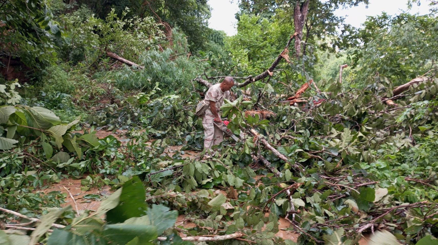 เจ้าหน้าที่อาสารักษาดินแดน อ.เมืองแม่ฮ่องสอน จ.แม่ฮ่องสอน และทหารจาก ร้อย.ร.751 ฐานน้ำเพียงดิน เร่งเคลียร์เส้นทางสายห้วยคลี่ - บ้านน้ำเพียงดิน ต.ผาบ่อง หลัง เกิดเหตุต้นไม้และดินหินสไลด์ลงปิดทับเส้นทางจนสัญจรผ่านไปมาไม่ได้ ล่าสุดเปิดทางได้แล้ว