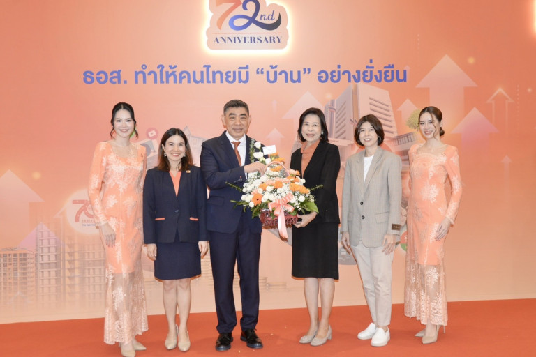 นายกมลภพ วีระพละ กรรมการผู้จัดการ ธนาคารอาคารสงเคราะห์ รับมอบกระเช้าดอกไม้แสดงความยินดี จากโสภิส จิตต์ประเสริฐ ผู้อำนวยการฝ่ายโฆษณา บริษัท สยามรัฐ จำกัด เนื่องในโอกาส ครบ 6 รอบ 72 ปี ธนาคารอาคารสงเคราะห์ ณ ธนาคารอาคารสงเคราะห์ สำนักงานใหญ่ พระราม 9 เมื่อเร็วๆนี้