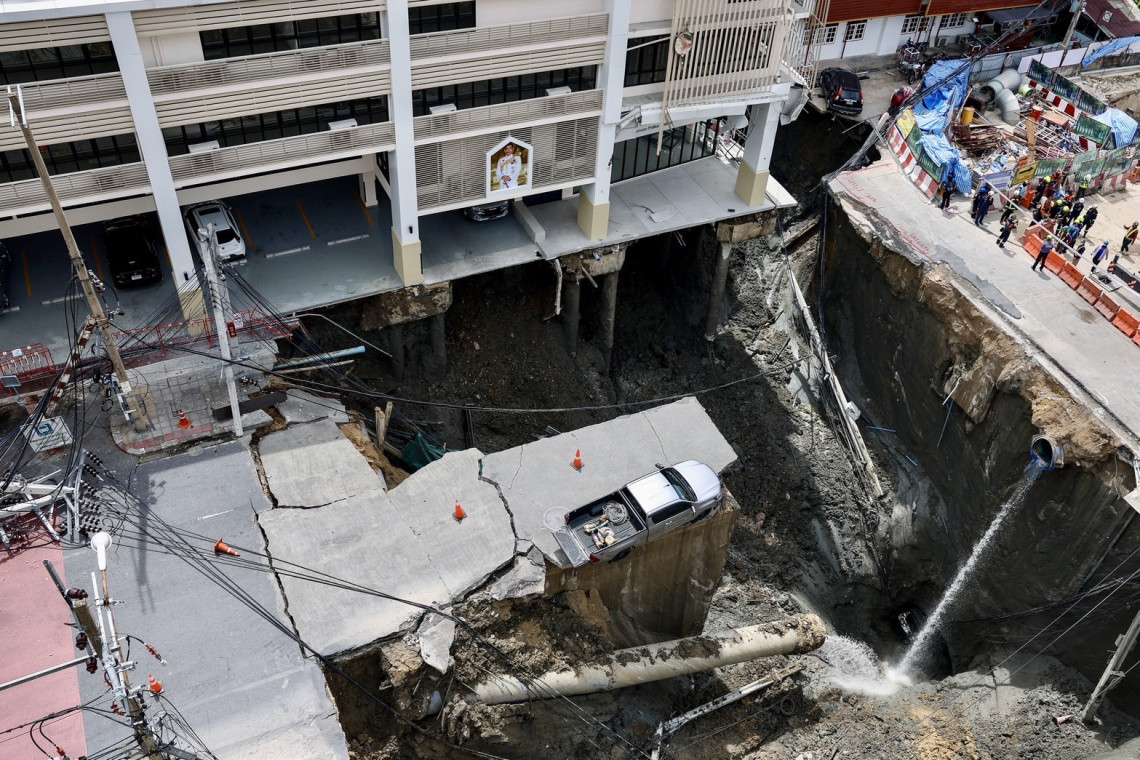 เมื่อวันที่ 24 กันยายน 2568 ศ.ดร.สุชัชวีร์ สุวรรณสวัสดิ์ อดีตนายกวิศวกรรมสถานแห่งประเทศไทยฯ (วสท.) ลงพื้นที่เหตุ ถนนทรุด พร้อมระบุว่า พื้นที่แห่งนี้ถือเป็นพื้นที่ภัยพิบัติแล้ว โดยหลุมยุบเป็นหลุมลึกถึงอุโมงค์รถไฟฟ้าใต้ดิน เกิดดินไหลเข้ารูอุโมงค์ที่สร้างเสร็จแล้ว ไหลเป็นกรวย ทำให้ผนังอุโมงค์ยุบ