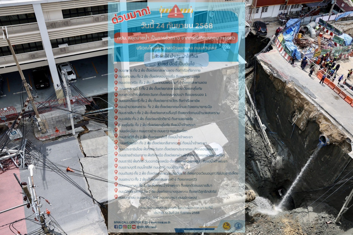 ประกาศ : ด่วนมาก!!! วันนี้ วันพุธที่ 24 ก.ย. 68 (บัดนี้ เป็นต้นไป) ผลกระทบจากเหตุถนนสามเสนทรุดตัว