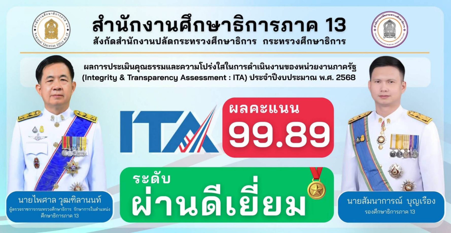 นายสุขชัย. กล่าวอีกว่าผลคะแนนนี้บ่งชี้ว่าสำนักงานศึกษาธิการภาค 13 ได้มีการปฏิบัติงานตามมาตรฐานการประเมิน ITA ได้อย่างยอดเยี่ยมเช่นกัน ผลคะแนนที่สูงทั้งสองหน่วยงานสะท้อนให้เห็นถึงความพยายามของหน่วยงานในสังกัดกระทรวงศึกษาธิการในการยกระดับธรรมาภิบาลและความซื่อสัตย์สุจริต ซึ่งส่งผลดีต่อความน่าเชื่อถือและความโปร่งใสในการทำงานของภาครัฐดังกล่าว