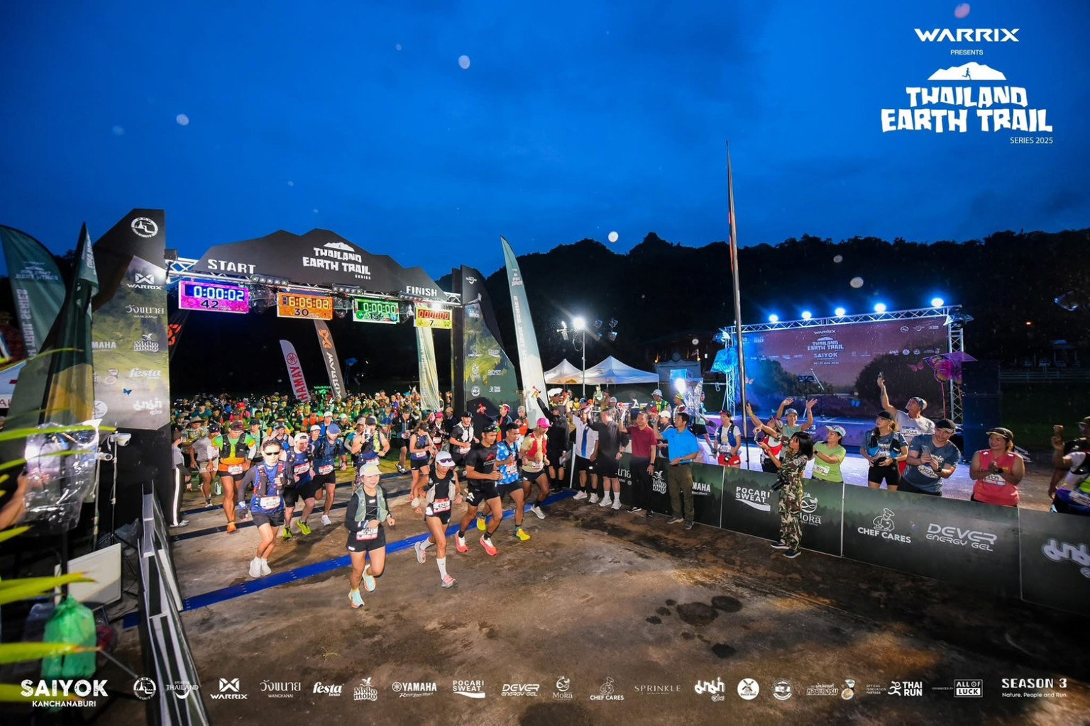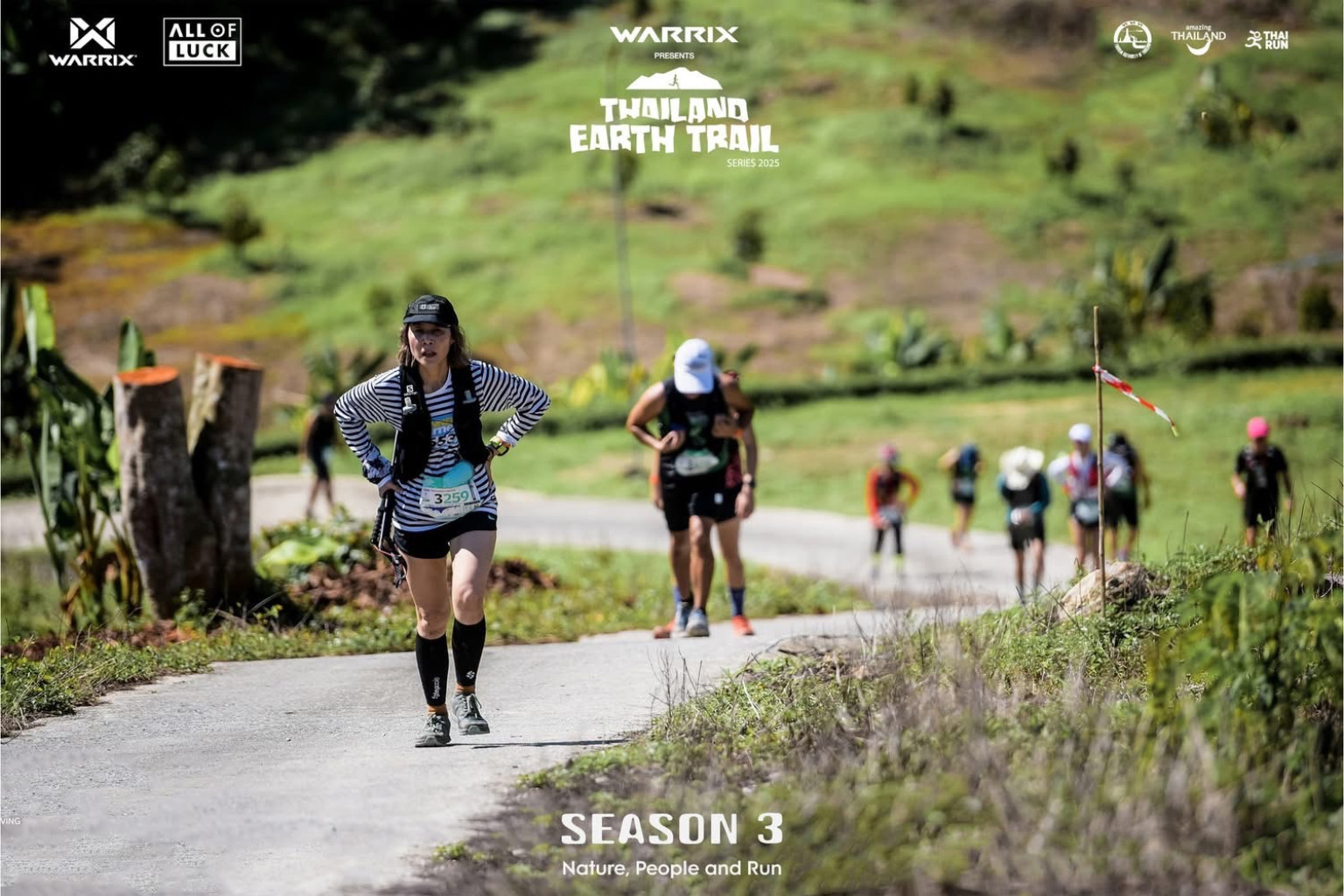 “WARRIX PRESENTS THAILAND EARTH TRAIL SERIES 2025” ปีนี้จัดขึ้นเป็นปีที่ 3 ได้จัดไปแล้ว 3 สนาม ได้แก่ สนามแรก ระเริงรัน จ.ประจวบคีรีขันธ์ ระหว่างวันที่ 31 พ.ค. -1 มิ.ย. 2568 ระยะทางวิ่ง 21 กม. 10 กม. 5 กม. สนามที่ 2 จ.สระบุรี ระหว่างวันที่ 26–27 ก.ค. 2568 ในระยะทาง 58 กม., 42 กม., 28 กม., 16 กม., 8 กม., และล่าสุด สนามที่ 3 จ.กาญจนบุรี ระหว่างวันที่ 30–31 ส.ค. 2568 ในระยะทาง 42 กม., 30 กม., 15 กม., 7 กม. จากการจัดทั้ง 3 สนามที่ผ่านมา ได้รับผลตอบรับเกินความคาดหมายมีผู้เข้าร่วมแข่งขันกว่า 4,000 คน และมีครอบครัวผู้ติดตามกว่า 5,000 คน นักวิ่งต่างประทับใจในความท้าทายของเส้นทางที่ออกแบบอย่างสวยงามและปลอดภัย การบริการและการดูแลที่อบอุ่นตลอดการแข่งขัน รวมถึงการได้สัมผัสวิถีชีวิตและอัธยาศัยไมตรีของชุมชนท้องถิ่น ขณะที่ชุมชนเองต่างแสดงความยินดีและภาคภูมิใจที่พื้นที่ของตนได้เป็นเจ้าภาพต้อนรับนักวิ่งจากทั่วประเทศ นอกจากจะช่วยสร้างรายได้ให้กับผู้ประกอบการท้องถิ่นแล้ว ยังทำให้คนในพื้นที่เกิดความตื่นตัวในการอนุรักษ์สิ่งแวดล้อมและอยากเห็นการจัดงานต่อเนื่องในทุกปี