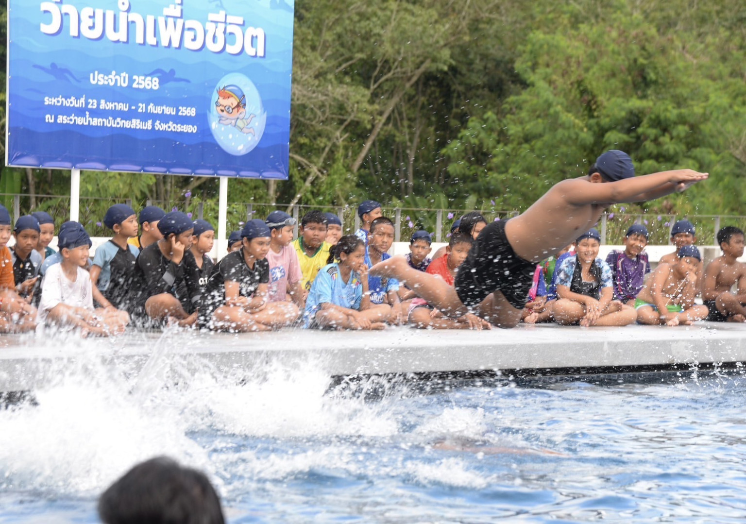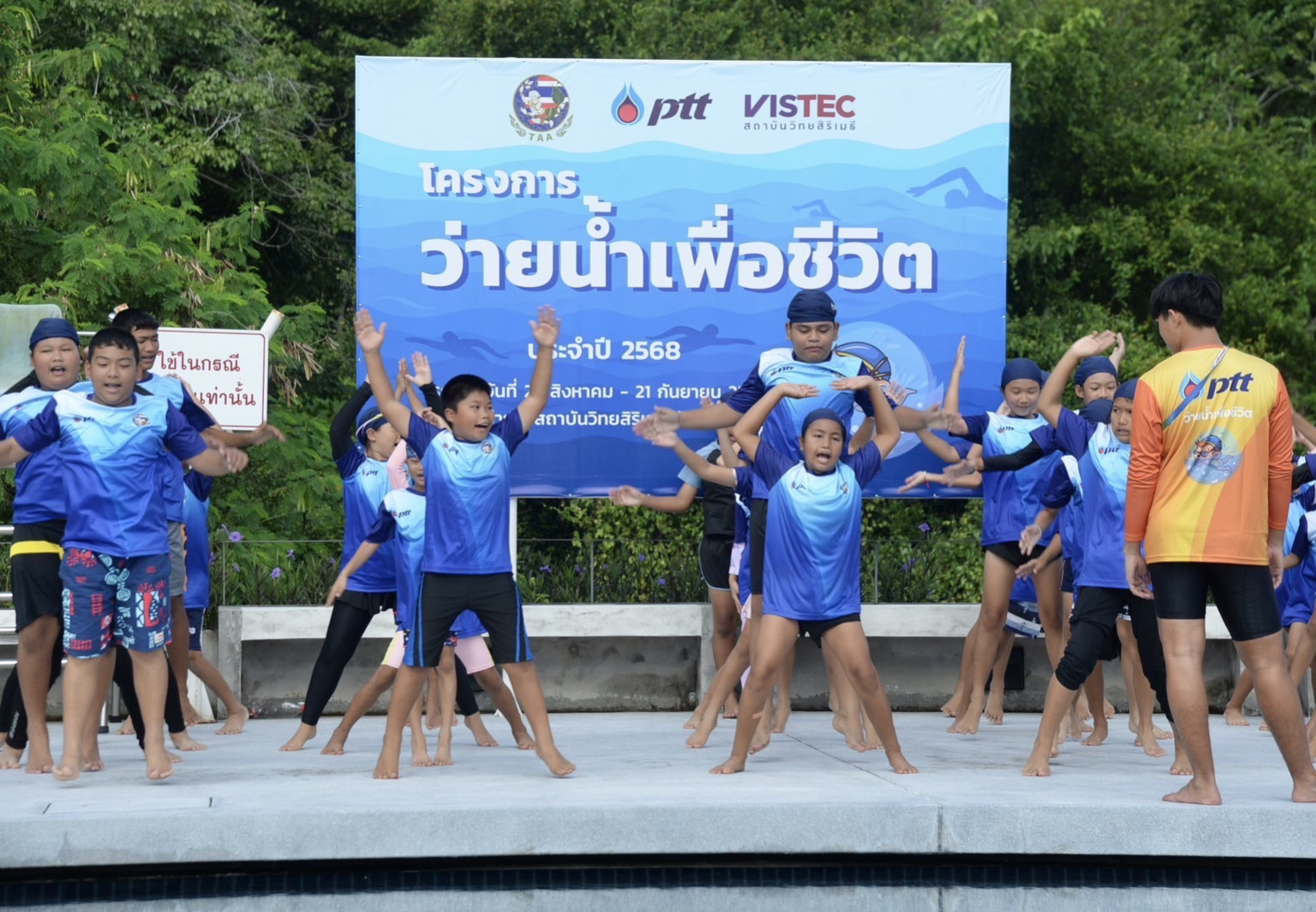 รอยยิ้มสดใสบ่งบอกถึงความภาคภูมิใจของเด็ก ๆ ที่รับใบประกาศนียบัตร ซึ่งแสดงให้เห็นว่าผ่านการเรียนว่ายน้ำจาก “โครงการว่ายน้ำเพื่อชีวิต” เป็นที่เรียบร้อยแล้ว หนึ่งในกิจกรรม โครงการว่ายน้ำเพื่อชีวิต ประจำปี 2568 โดยบริษัท ปตท. จำกัด (มหาชน) (ปตท.) ร่วมมือกับสมาคมกีฬาทางน้ำแห่งประเทศไทย สอนทักษะการว่ายน้ำให้กับเยาวชนทั่วประเทศ เพื่อลดอัตราการเสียชีวิตจากการจมน้ำ โดยดำเนินโครงการตั้งแต่เดือนสิงหาคม ถึงพฤศจิกายน และมีเป้าหมายจัดกิจกรรมให้แก่เยาวชนจำนวน กว่า 6,000 คน ใน 70 พื้นที่ ทุกภูมิภาคทั่วประเทศ