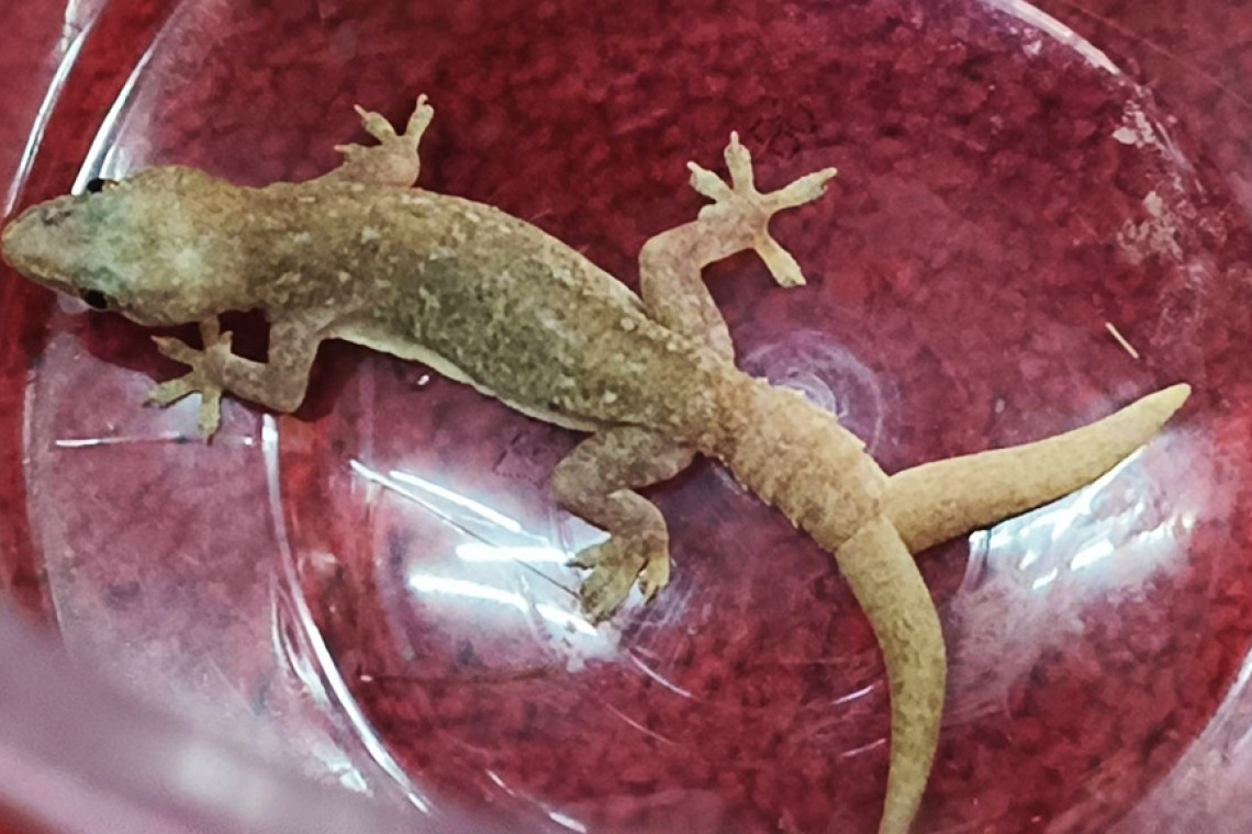 จากการลงพื้นที่ ที่วัดใหม่กรงทอง ม.3 ต.ศรีมหาโพธิ อ.ศรีมหาโพธิ จ.ปราจีนบุรี พบว่าจุดที่พบจิ้งจกสองหางอยู่บริเวณก๊อกน้ำ ของห้องน้ำวัด โดยทางผู้ที่พบ และได้จับจิ้งจกสองหางตัวดังกล่าวได้ เป็นเจ้าหน้าที่วัด โดยได้จับใส่ขวดโหลพลาสติกใส เจาะรูบริเวณฝาปิดเพื่อเป็นที่ระบายอากาศ เพิ่งพบว่าจิ้งจกสองหางตัวดังกล่าวมีความยาว 10 ซม. ช่วงบริเวณแง่งหางที่งอกออกมามีความยาว 2.3 ซม.
