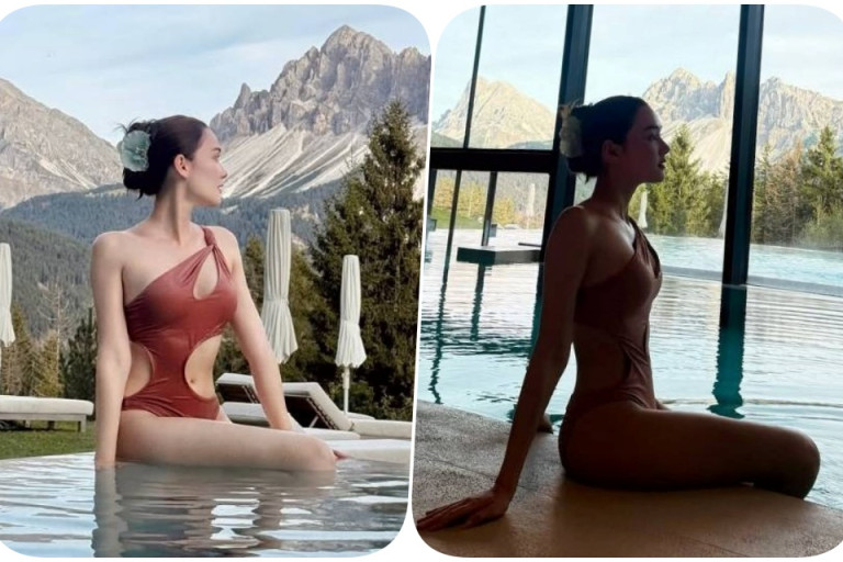 ในภาพเจ้าตัวมาในชุดว่ายน้ำวันพีซสีน้ำตาลดีไซน์เก๋ โชว์หุ่นเป๊ะปังพร้อมผิวขาวเนียนน่าหลงใหล ท่ามกลางบรรยากาศวิวภูเขาและธรรมชาติสุดโรแมนติก ทั้งมุมแช่น้ำกลางสระและนั่งโพสชิลล์ริมสระในร่ม ทำเอาแฟน ๆ แห่กดไลก์และคอมเมนต์ชื่นชมความสวยสะกดตาอย่างล้นหลาม