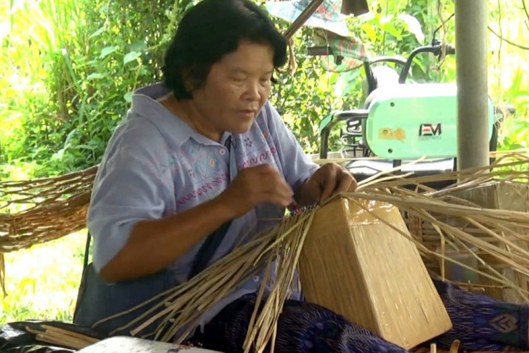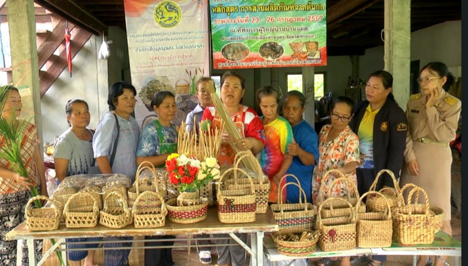 วันนี้ จะพาไปดูกลุ่มจักสานจากต้นผือ ต้นกก และผักตบชวาของกลุ่มจักสานบ้านแมด ต.ดงชน อ.เมือง จ.สกลนคร ที่มีนางอ่อนมณี หาญมนตรี เป็นประธานกลุ่ม ซึ่งผลิตเครื่องจักสานจากผักตยชวาและต้นดกซึ่งเป็นวัสดุธรรมชาติ เป็นวัสดุขยะให้มีคุณค่าทุกชิ้นทำด้วยมือ คงทนแข็งแรง ราคาถูก เช่น กระเป๋า ตะกร้า เสื่อ เก้าอี้ ภาชนะและของใช้ในบ้าน นับว่าเป็นภูมิปัญญาชาวบ้านอันทรงคุณค่าที่น่าทึ่ง นางอ่อนมณี หาญมนตรี ประธานกลุ่มบอกว่ากระบวนการเริ่มตั้งแต่การเก็บผักตบชวาทำความสะอาด การทำให้แห้ง การอบกำมะถันเพื่อป้องกันเชื้อรา และการนำเส้นใยมาสานเป็นลวดลายต่างๆ ด้วยมืออย่างประณีต ถือเป็นภูมิปัญญาท้องถิ่นที่สร้างรายได้และช่วยลดปัญหาวัชพืชในแหล่งน้ำ ลดการตื้นเขินได้เป็นอย่างดี