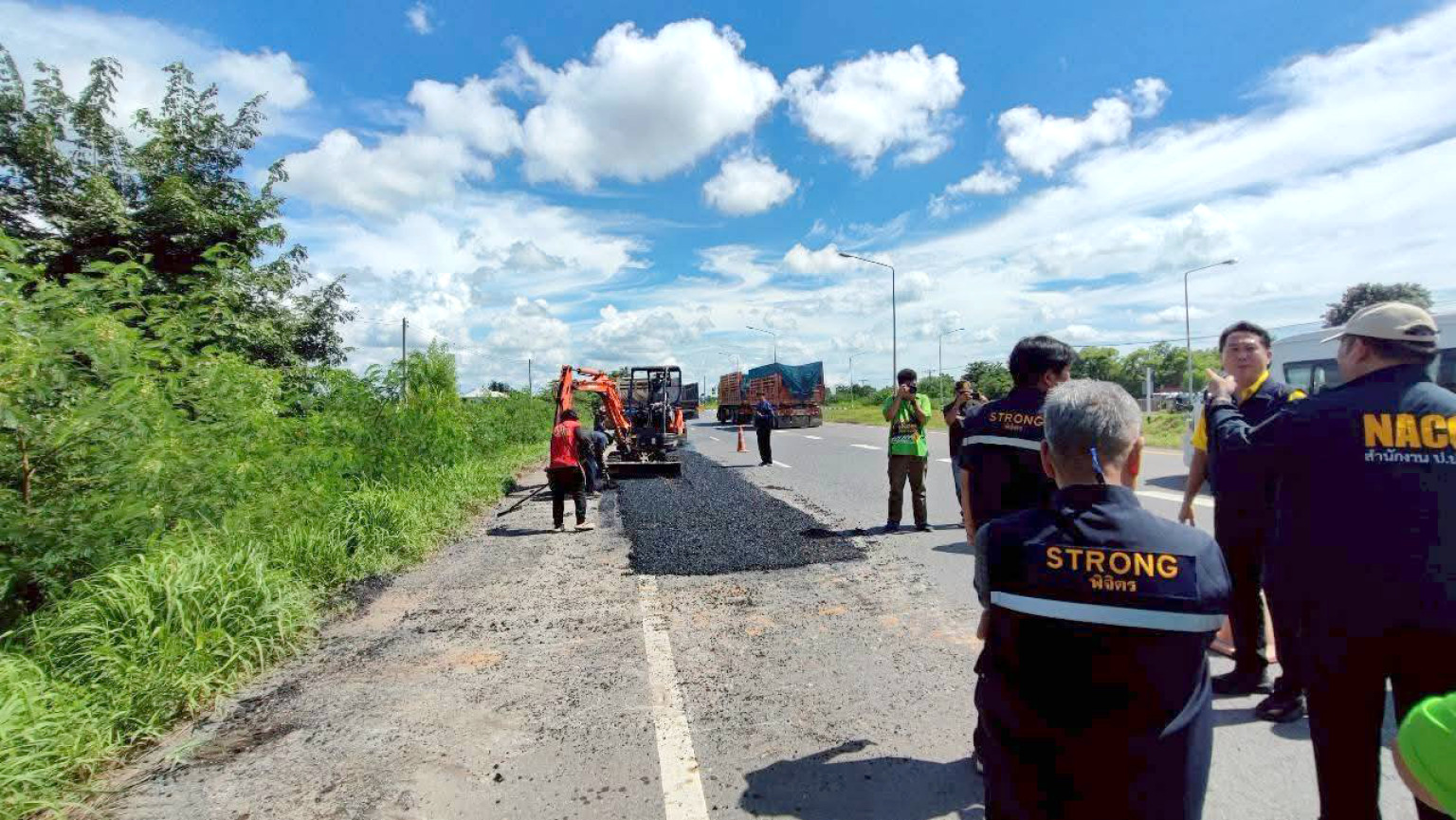 โดย นายธวัชชัย ผอ.แขวงทางหลวงพิจิตร ซึ่งได้ร่วมลงพื้นที่ในครั้งนี้ได้ชี้แจงว่าถนนสายนี้มีการก่อสร้างมาตั้งแต่ปี 2563 และมีการขยายสัญญามาจนแล้วเสร็จในปี 2568 เนื่องจากในช่วงนั้นมีสถานการณ์โควิด อีกทั้งตลอดระยะเวลาก่อสร้างมีการสัญจรจากรถบรรทุกหนักค่อนข้างมาก เมื่อมีการรองรับรถในปริมาณที่มากจึงเกิดการแตกชำรุดประกอบกับช่วงฤดูฝนมีน้ำซึมเข้าพื้นถนนทำให้ความเสียหายขยายวงกว้างค่อนข้างเร็วและเสียหายหนัก ด้วยสภาพถนนเป็นส่วนผสมของหินคลุกเมื่อเจอกับสภาพฝนจึงเกิดการเสียหายได้ง่าย
