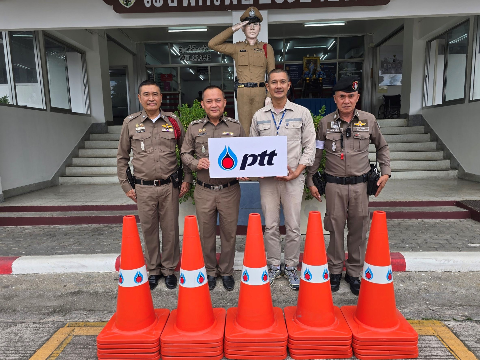 26 ก.ย.2568 ผู้สื่อข่าวรายงานว่า เมื่อเร็วๆนี้ โรงแยกก๊าซธรรมชาติระยอง โดยนายสิริวิช ประดิษฐ์เทียมผล ผู้จัดการส่วนบริหารประเด็นภาครัฐและสังคม ปตท. เป็นผู้แทนส่งมอบกรวยจราจรให้แก่สถานีตำรวจภูธรในพื้นที่ใกล้เคียงจำนวน 6 สถานี ได้แก่ สภ.มาบตาพุด สภ.ห้วยโป่ง สภ.บ้านฉาง สภ.นิคมพัฒนา สภ.บ้านค่าย และสภ.เมืองระยอง ท้ังนี้การมอบกรวยจราจรในครั้งนี้มีเป้าหมายเพื่อสนับสนุนการทำงานของเจ้าหน้าที่ตำรวจในการจัดระเบียบและอำนวยความสะดวกด้านการจราจร โดยเฉพาะในช่วงเวลาที่มีการจราจรหนาแน่น อาทิ ชั่วโมงเร่งด่วน หน้าโรงเรียน ตลาดนัด รวมถึงในช่วงเทศกาลและวันหยุดยาว ซึ่งมักจะมีผู้ใช้รถใช้ถนนจำนวนมาก การมีอุปกรณ์ช่วยเหลือด้านการจราจรที่เพียงพอจะช่วยลดความเสี่ยงในการเกิดอุบัติเหตุ และเพิ่มความปลอดภัยให้กับประชาชนได้อย่างมีประสิทธิภาพ