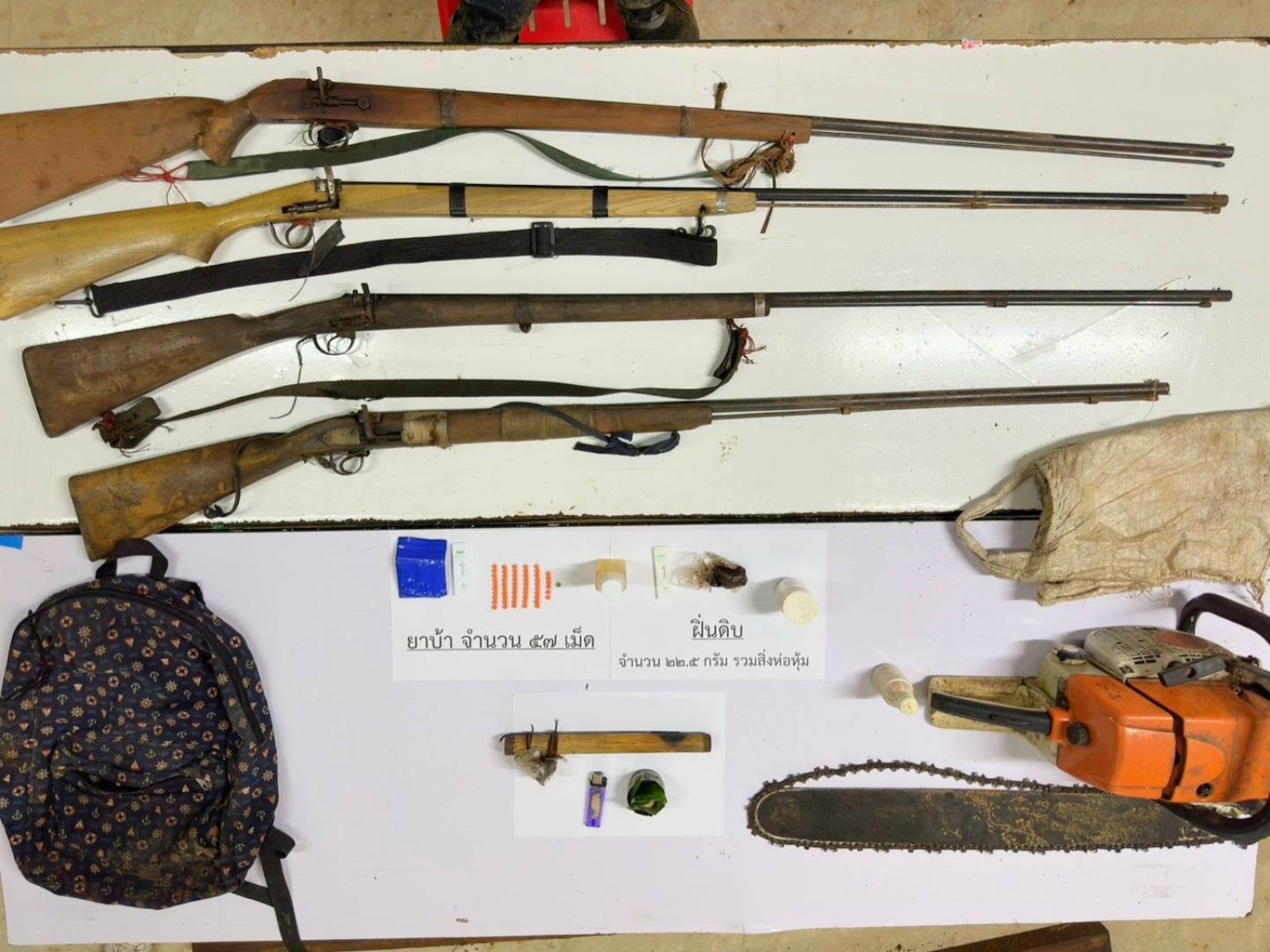 เจ้าหน้าที่ตำรวจ อำเภอปาย จังหวัดแม่ฮ่องสอน เข้าตรวจค้นกระท่อมในสวนข้าวโพด หมู่ที่ 8 ตำบลทุ่งยาว หลังสืบทราบว่ามีการซุกซ่อนยาเสพติดและสิ่งผิดกฎหมาย โดยสามารถจับกุมนายชาคริต (ขอสงวนนามสกุล) อายุ 37 ปี ชาวบ้านหมู่ที่ 4 ตำบลเวียงเหนือ อำเภอปาย ได้คาหนังคาเขา จากการตรวจค้น เจ้าหน้าที่พบของกลางจำนวนมาก ได้แก่ ยาบ้า 57 เม็ด ฝิ่น น้ำหนักรวมสิ่งหุ้มห่อ 22.5 กรัม ปืนไทยประดิษฐ์ (ปืนแก๊ปยาว) 4 กระบอก วางซ่อนอยู่หลังประตู เลื่อยโซ่ยนต์ ยี่ห้อ STIHL สีส้มขาว ขนาดบาร์ 27.5 นิ้ว พร้อมใบเลื่อย