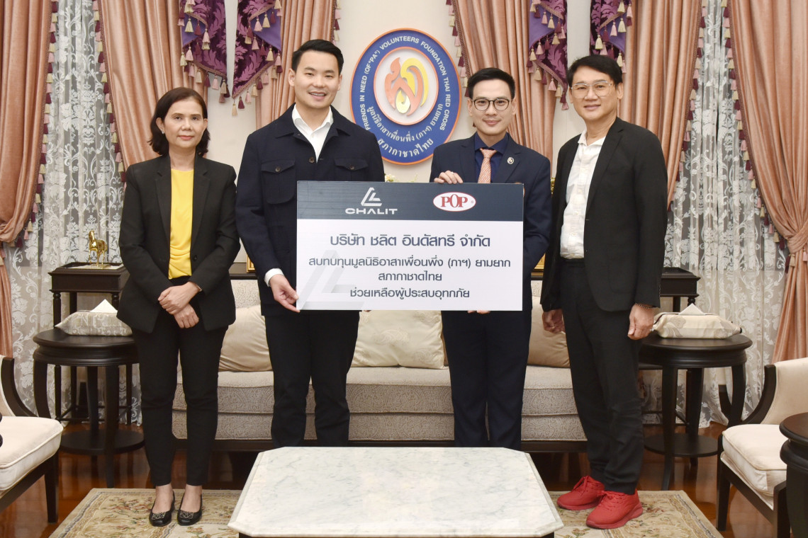ฐิติวัฒน์ ว่องวรรณกุล กรรมการและผู้จัดการ มูลนิธิอาสาเพื่อนพึ่ง (ภาฯ) ยามยากฯ สภากาชาดไทย รับมอบเงินบริจาคจาก ชวิศ ยงเห็นเจริญ กรรมการผู้จัดการ บริษัท ชลิต อินดัสทรี จำกัด ผู้ผลิตและจำหน่ายอะไหล่ยานยนต์ ภายใต้แบรนด์ “POP” และ ผศ.(พิเศษ)ดร. อภิสิทธิ์ ฉัตรทนานนท์ ประธานกรรมการบริหารมูลนิธิคุณแม่คุณภาพ เพื่อร่วมสมทบทุนมูลนิธิอาสาเพื่อนพึ่ง(ภาฯ)ยามยากฯ ในการช่วยเหลือและฟื้นฟูคุณภาพชีวิตผู้ประสบอุทกภัย ที่สำนักงานมูลนิธิอาสาเพื่อนพึ่ง (ภาฯ) ยามยากฯ เมื่อวันก่อน