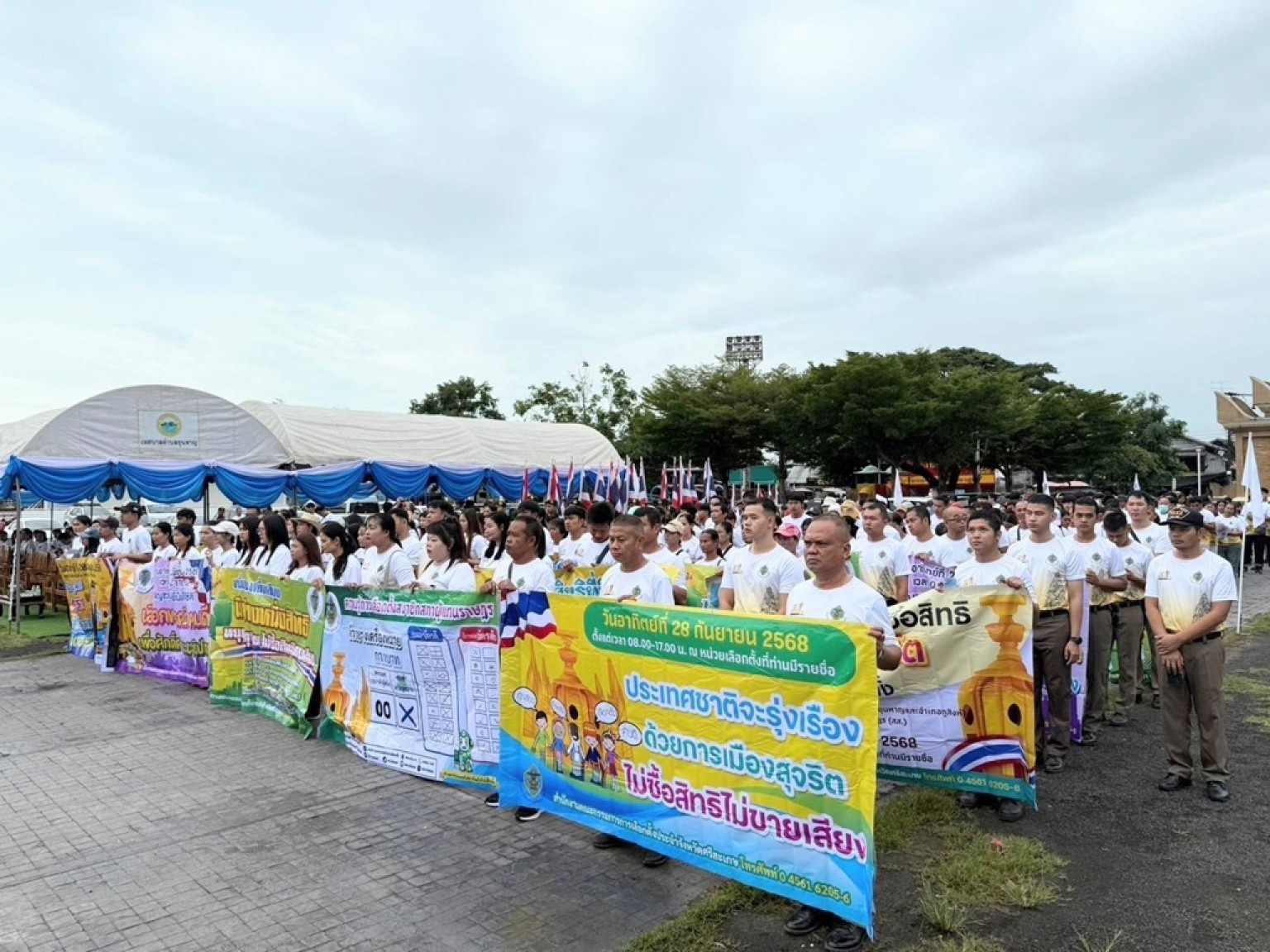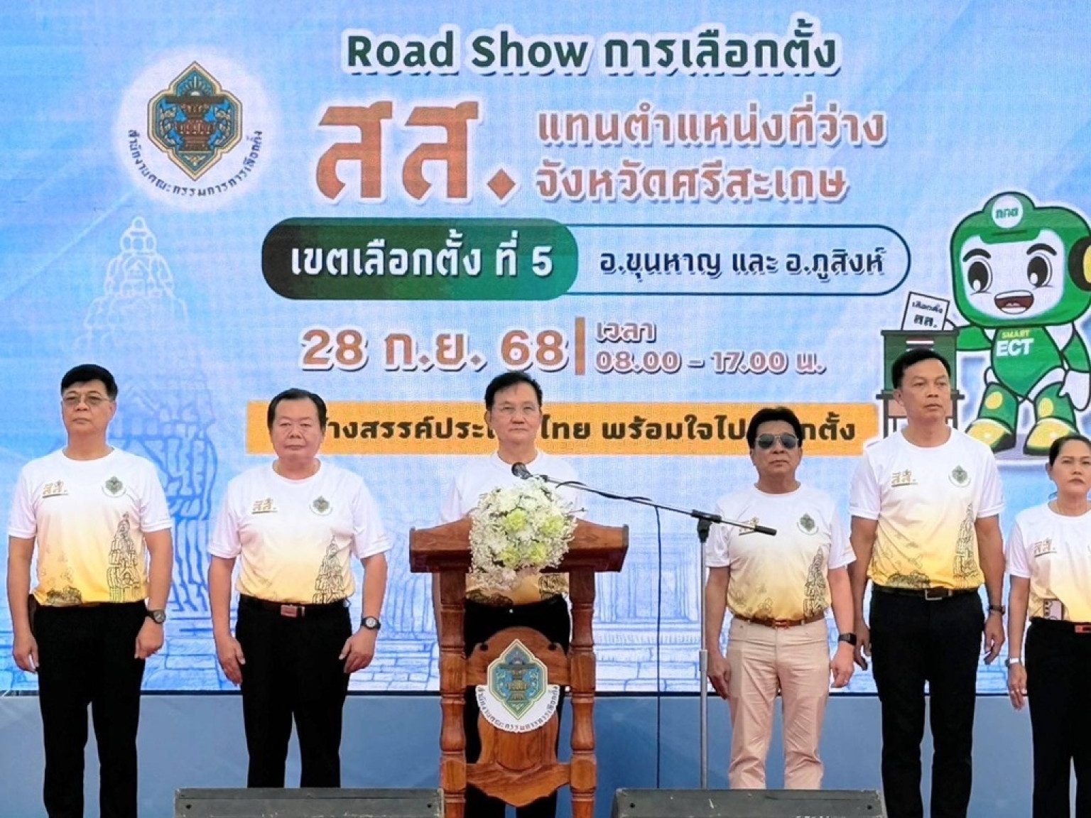 วันที่ 26 ก.ย.68 นายอนุพงศ์ สุขสมนิตย์ ผู้ว่าราชการจังหวัดศรีสะเกษ ได้มอบหมายให้ นายธาตรี สิริรุ่งวนิช รองผู้ว่าราชการจังหวัดศรีสะเกษ ร่วมกิจกรรมโรด Road show ไม่ซื้อสิทธิ ไม่ขายเสียง เลือกตั้ง สส. แทนตำแหน่งที่ว่าง ณ สนามวงกลมอำเภอขุนหาญ อำเภอขุนหาญ จังหวัดศรีสะเกษ โดยมี ศาสตราจารย์สันทัด ศิริอนันต์ไพบูลย์ กรรมการการเลือกตั้ง ประธานในพิธีฯ มีนายวีระ ยี่แพร รองเลขาธิการคณะกรรมการเลือกตั้ง ผู้อำนวยการสำนักงานคณะกรรมการการเลือกตั้งประจำจังหวัดศรีสะเกษ นายอำเภอขุนหาญ นายอำเภอภูสิงห์ ผู้กำกับตำรวจภูธรขุนหาญ หัวหน้าส่วนราชการ ผู้แทนจากสำนักงานส่งเสริมการเรียนรู้ประจำจังหวัด คณะกรรมการศูนย์ส่งเสริมพัฒนาประชาธิปไตย (ศส.ปชต.) หน่วยงาน ภาครัฐ ภาคเอกชน สื่อมวลชน ภาคีเครือข่าย รวมทั้งนักเรียน นักศึกษาและพี่น้องประชาชนชาวอำเภอขุนหาญและอำเภอภูสิงห์ ร่วมกิจกรรมฯ