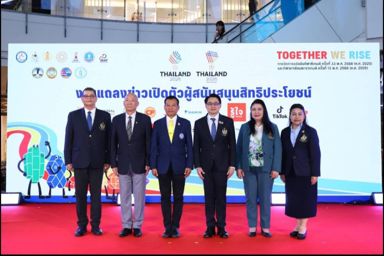 วันที่ 26 ก.ย.2568 การกีฬาแห่งประเทศไทย (กกท.) จัดงาน “Together We Rise” การแถลงข่าวเปิดตัวผู้สนับสนุนสิทธิประโยชน์การแข่งขันกีฬาซีเกมส์ ครั้งที่ 33 และกีฬาอาเซียนพาราเกมส์ ครั้งที่ 13 อย่างเป็นทางการ ณ ลานเซ็นทรัลคอร์ท ชั้น 1 ศูนย์การค้าเซ็นทรัลเวิลด์ กรุงเทพฯ โดยมี ดร.ก้องศักด ยอดมณี ผู้ว่าการการกีฬาแห่งประเทศไทย เป็นประธานในพิธี พร้อมด้วย นายชลิตรัตน์ จันทรุเบกษา รองเลขาธิการคณะกรรมการโอลิมปิกแห่งประเทศไทย ในพระบรมราชูปถัมภ์ พันเอกหญิง ดร.วันดี โตสุวรรณ เลขาธิการสหพันธ์กีฬาคนพิการแห่งอาเซียน ดร.กิตติพงษ์ โพธิมู รองประธานคณะกรรมการพาราลิมปิกแห่งประเทศไทย คณะผู้บริหารการกีฬาแห่งประเทศไทย ผู้แทนองค์กรผู้สนับสนุนกว่า 20 แห่ง แขกผู้มีเกียรติ และสื่อมวลชนเข้าร่วมอย่างคับคั่ง