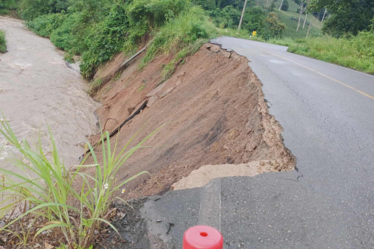 นอกจากเหตุในอำเภอแม่สะเรียงแล้ว ที่ บ้านหนองแห้ง อำเภอขุนยวม จังหวัดแม่ฮ่องสอน ยังเกิดปัญหาน้ำในแม่น้ำแม่ลาก๊ะกัดเซาะผิวถนนทางหลวงหมายเลข 108 เข้ามาเกือบครึ่งเลน เจ้าหน้าที่หมวดทางหลวงขุนยวมได้ออกประกาศเตือนผู้ใช้เส้นทางให้เพิ่มความระมัดระวัง พร้อมเร่งดำเนินการซ่อมแซมในช่วงเช้าวันนี้