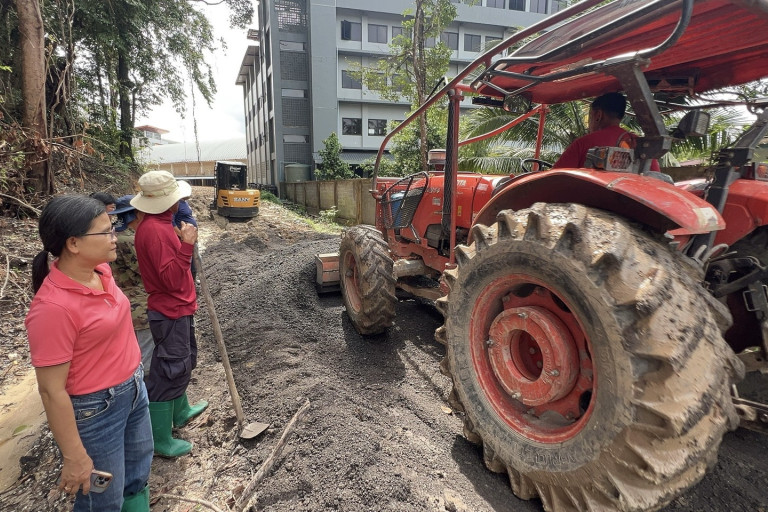 วันที่ 28 กันยายน 2568 ผู้สื่อข่าวได้ลงพื้นที่โรงเรียนวัดคิรีวิหาร (สมเด็จพระวันรัต อุปถัมภ์) ต.ชำราก อ.เมือง จ.ตราด ผู้นำชุมชนตำบลชำราก ประชาชน กลุ่มจิตอาสารถบรรทุกดิน ร่วมกันปรับปรุงเส้นทางเข้าไปยังหลุมหลบภัยที่สร้างขึ้นภายในบริเวณโรงเรียน เพื่อให้สามารถใช้งานได้อย่างสะดวกและปลอดภัย โดยได้รับการสนับสนุนดิน หิน จำนวน 500 คิว จากหมวดการทางแหลมกลัด แขวงทางหลวงตราด