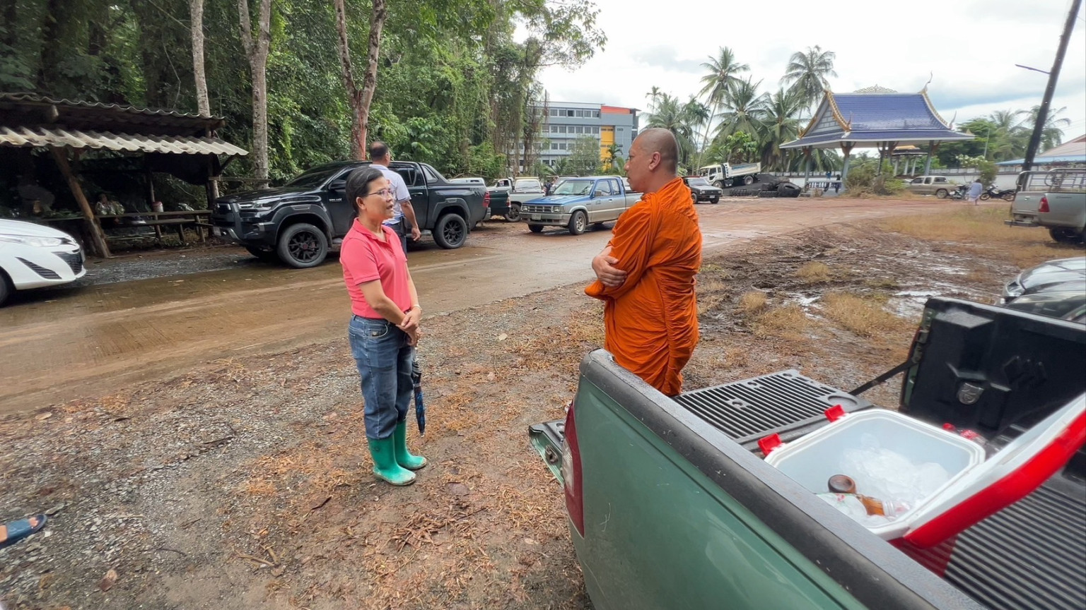 พระปกรณ์ กล่าวต่อว่า ที่ตัดสินใจมาช่วยกันที่โรงเรียนในวันนี้ ก็เพื่อความปลอดภัยของเด็กๆ ซึ่งเราก็เปรียบเสมือนลูกหลาน เมื่อรู้ว่าสถานการณ์ในตอนนี้ไม่สู้ดีนัก อะไรที่พอจะช่วยประเทศชาติได้ก็อยากจะทำ โดยวัสดุที่นำมาใช้ได้รับการสนับสนุนจากแขวงทางหลวงคลองสน ซึ่งทางผู้ใหญ่บ้านได้ช่วยประสานงานให้
