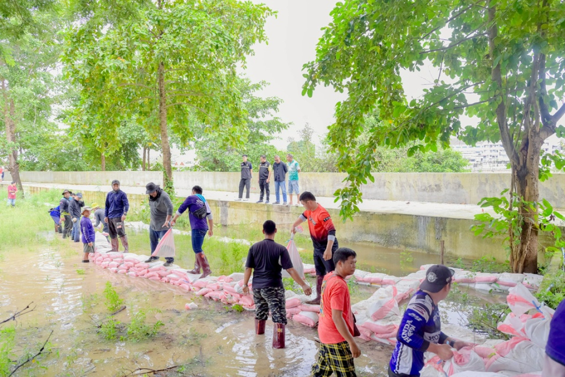 สชป.7 เกาะติดสถานการณ์น้ำอย่างใกล้ชิด พร้อมติดตามการทำงานของเครื่องจักร-เครื่องมือ และเสริมกระสอบทรายในพื้นที่เสี่ยง