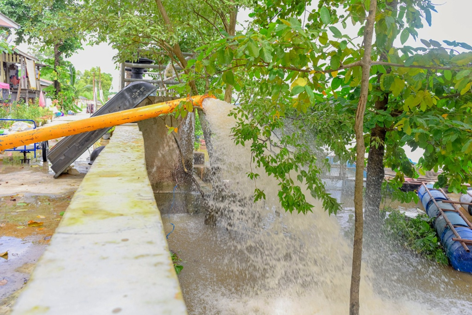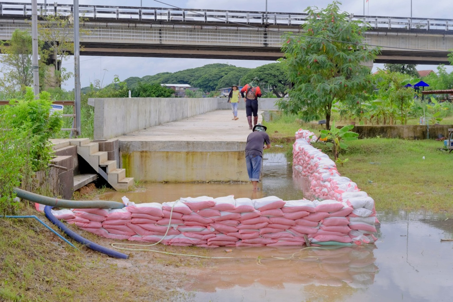 ในการนี้ สำนักงานชลประทานที่ 7 ได้เร่งดำเนินการวางกระสอบทรายเสริมแนวกั้นน้ำ เพื่อสร้างความมั่นคงด้านน้ำ พร้อมทั้งติดตั้งเครื่องสูบน้ำ ขนาด 10 นิ้ว จำนวน 1 เครื่อง อัตราการสูบ 0.25 ลบ.ม./วินาที เพื่อเร่งระบายน้ำออกจากพื้นที่ดังกล่าวโดยเร็วที่สุด พร้อมดำเนินการเสริมกระสอบทราย จำนวน 4,000 กระสอบ บรรเทาผลกระทบที่อาจจะเกิดขึ้นกับพี่น้องประชาชนในพื้นที่ให้ได้มากที่สุด