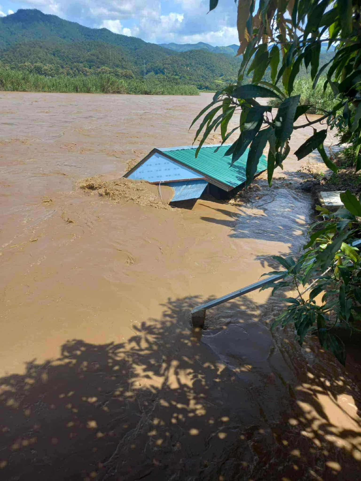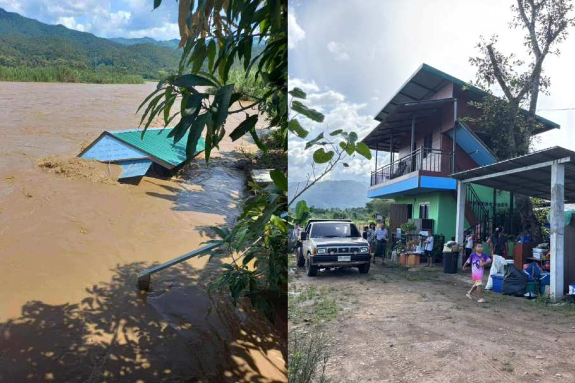 เมื่อวันที่ 28 กันยายน 2568 นางสาวกรรณิการ์ คำปอก ผู้ใหญ่บ้านห้วยสิงห์ ต.แม่ยวม อ.แม่สะเรียง จ.แม่ฮ่องสอน ได้รายงานสถานการณ์อุทกภัยต่อ นายวรศักดิ์ พานทอง นายอำเภอแม่สะเรียง ว่า มีบ้านเรือนของราษฎรในหมู่บ้านที่ปลูกติดลำน้ำยวม ได้ถูกน้ำกัดเซาะและไหลไปกับกระแสน้ำ ขณะที่มีน้ำป่าไหลหลากในลำน้ำยวม จำนวน 1 หลัง ทั้งนี้พื้นที่ดังกล่าวเดิมเป็นพื้นที่นาซึ่งภายหลังได้ถูกเปลี่ยนสภาพมาเป็นที่อยู่อาศัย และได้มีการก่อสร้างบ้านเมื่อประมาณ 3 ปี โดยตลอดช่วงเวลาที่ผ่านมา พื้นที่นี้ถูกน้ำกัดเซาะอย่างต่อเนื่องจนในที่สุดส่งผลให้โครงสร้างบ้านได้รับความเสียหายและหล่นไปในแม่น้ำยวม
