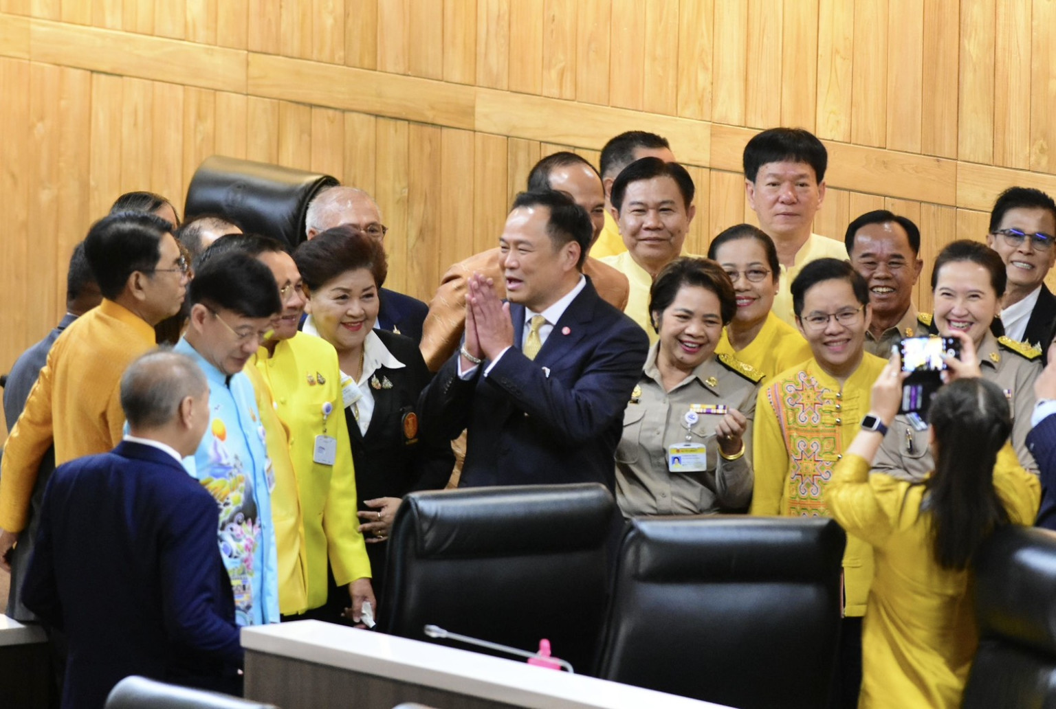 ผู้สื่อข่าวรายงานว่าบรรยากาศในห้องประชุมนายอนุทิน ได้ถ่ายภาพร่วมกับสส.พรรคภูมิใจไทย และมีบรรดาสว.สีน้ำเงินได้เข้าแสดงความยินดีกับนายกฯด้วย