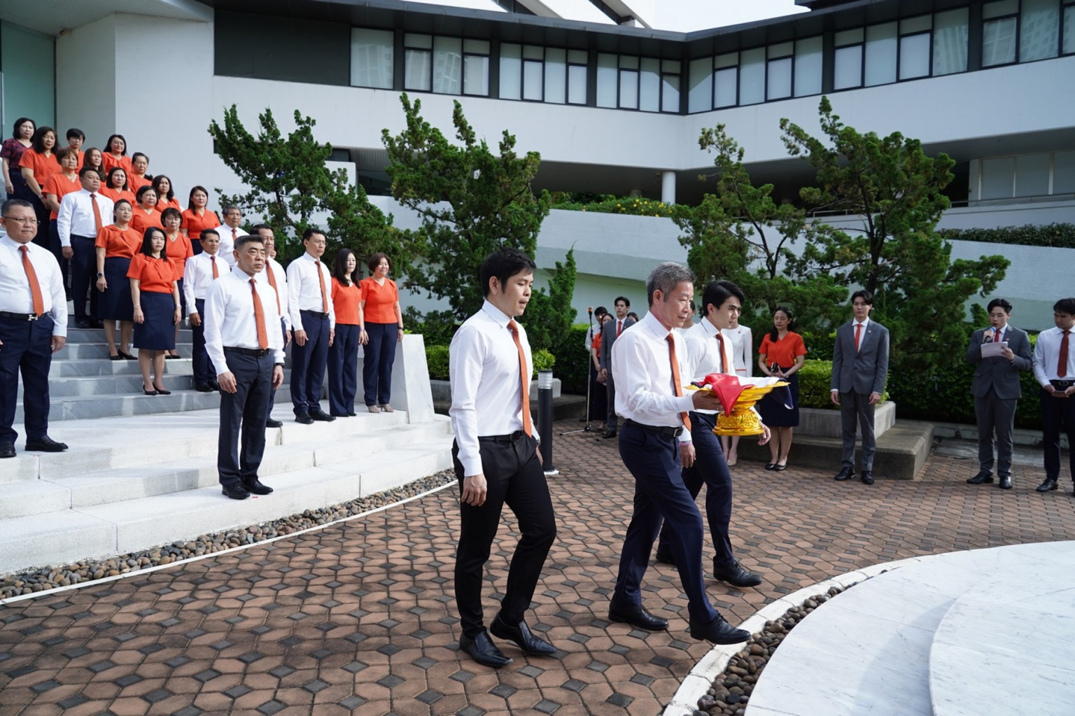 นายกมลภพ วีระพละ กรรมการผู้จัดการธนาคารอาคารสงเคราะห์ (ธอส.) พร้อมด้วยผู้บริหารระดับสูง ผู้บริหารและผู้ปฏิบัติงานธนาคาร เข้าร่วมกิจกรรมเคารพธงชาติและร้องเพลงชาติไทย เนื่องใน “วันพระราชทานธงชาติไทย” (Thai National Flag Day) ซึ่งตรงกับวันที่ 28 กันยายนของทุกปี โดยเป็นวันที่น้อมรำลึกถึงโอกาสที่พระบาทสมเด็จพระมงกุฎเกล้าเจ้าอยู่หัว รัชกาลที่ 6 ทรงพระกรุณาโปรดเกล้าฯ ประกาศพระราชบัญญัติแก้ไขพระราชบัญญัติธง พุทธศักราช 2460