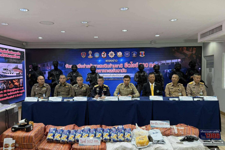 วันที่ 29 กันยายน 2568 เวลา 10.00น. หน่วยงานร่วมปฏิบัติ แถลงผลการจับขบวนการลักลอบขนยาเสพติดล็อตใหญ่กลางทะเลภูเก็ต เมื่อวันที่ 24 ก.ย.ที่ผ่านมา ป.ป.ส. , ตำรวจน้ำ , กองทัพเรือ , ศรชล. เปิดปฏิบัติการจับบุกจับกลางทะเลภูเก็ต โดยสามารถจับกุมผู้ต้องหาได้ 4 ราย แต่เสียชีวิต 1 คน เนื่องจากกระโดดลงน้ำพยายามที่จะหลบหนีขณะเจ้าหน้าที่บุกเข้าจับกุม พร้อมโทรศัพท์ ซึ่งเป็นพยานหลักฐานสำคัญ ซึ่งกองบังคับการตำรวจน้ำ ยึด พร้อมไอซ์ จำนวน 502 กก. คีตามีน 600 กรัม โดยซุกซ่อนไว้ภายในห้องอับเฉาใต้ท้องเรือ บนเรือบรรทุกผู้โดยสาร (เรือไดร์ฟวิ่ง) สัญชาติไทย เหตุเกิดที่ฝั่งทะเลอันดามัน บริเวณท่าเรืออ่าวฉลอง จ.ภูเก็ต นอกจากนั้นยังตรวจยึดโทรศัพท์มือถืออีก 1 เครื่องซึ่งผู้ต้องหาได้โยนลงทะเล แต่เจ้าหน้าที่ชุดประดาน้ำเก็บกู้มาได้