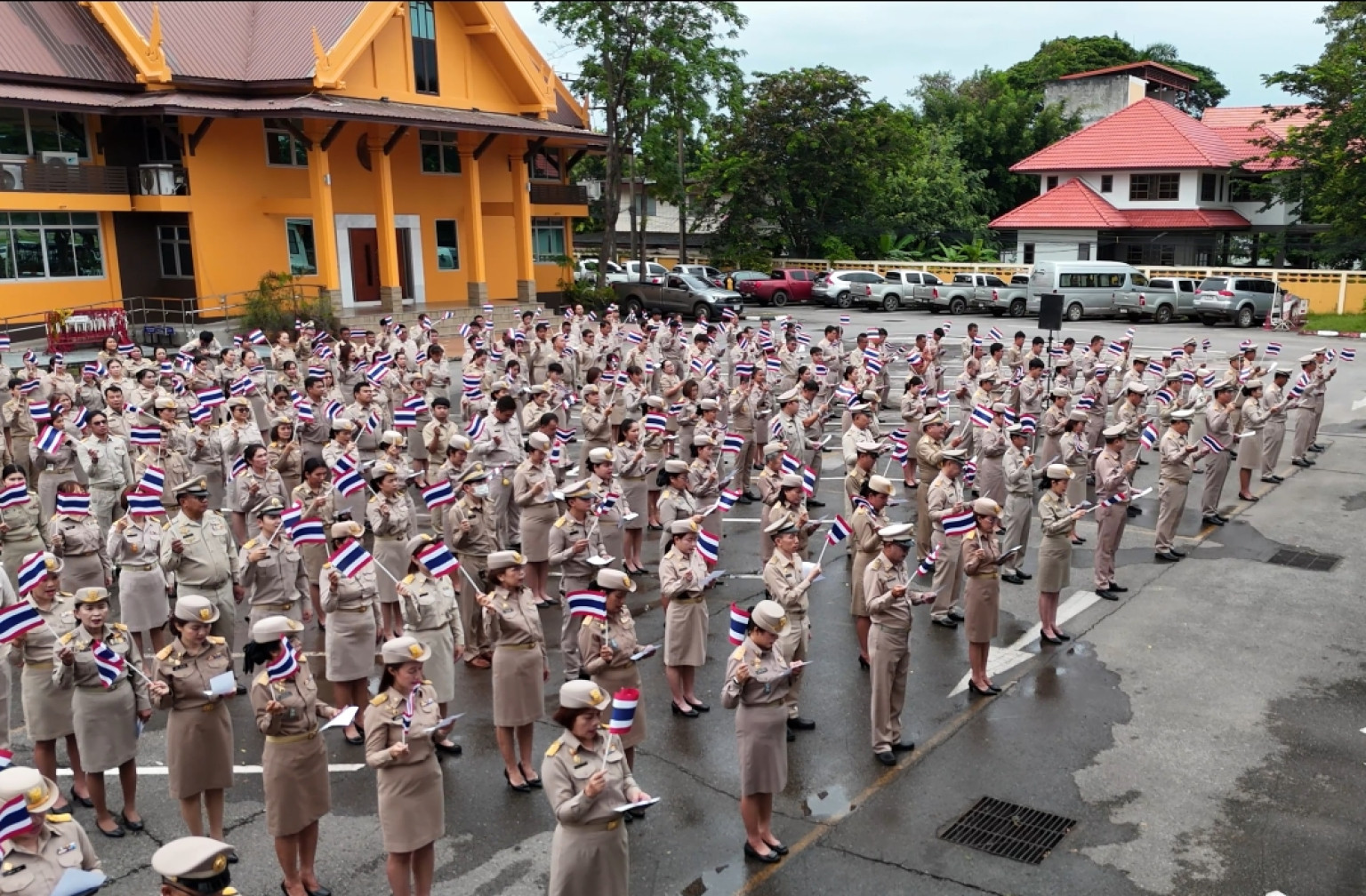 วันที่ 29 ก.ย.68 เวลา 08.00 น. นายศราวุธ เพชรพนมพร นายก อบจ.อุดรธานี มอบหมายให้ นายชัชวาลย์ ลือคำหาญ รองนายก อบจ.อุดรธานี นำ คณะผู้บริหาร ส.อบจ.อบจ.อุดรธานี ปลัด, รองปลัด, ผอ.กองทุกกอง, หน.สป., หัวหน้าส่วนราชการและบุคลากรเจ้าหน้าที่ อบจ.อุดรธานี เข้าแถวเคารพธงชาติ สวดมนต์ไหว้พระ กล่าวคำปฏิญาณตน เทิดทูนและรักษาไว้ซึ่ง สถาบันชาติ ศาสนา พระมหากษัตริย์ เนื่องในวาระครบรอบ 108 ปี วันพระราชทานธงชาติไทย (28 ก.ย.ของทุกปี ) และร้องเพลงเทิดทูนธงไทยของศิลปิน “หลง ลงลาย” จำนวน 2 รอบ ณ บริเวณหน้าเสาธงชาติ อบจ.อุดรธานี