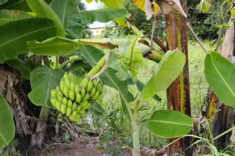 ฮีอฮา!! พบกล้วยน้ำว้าแปลกโผล่กลางท่งนาออกลูกกกลางต้น ชาวบ้านพากันนับลูกและจุดธูปขอเลข