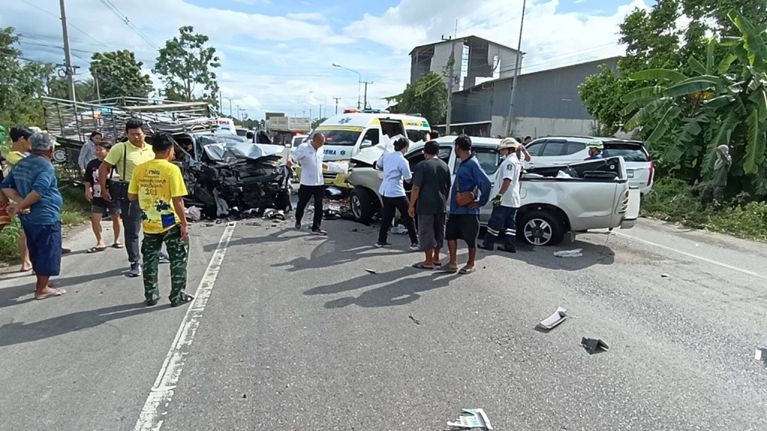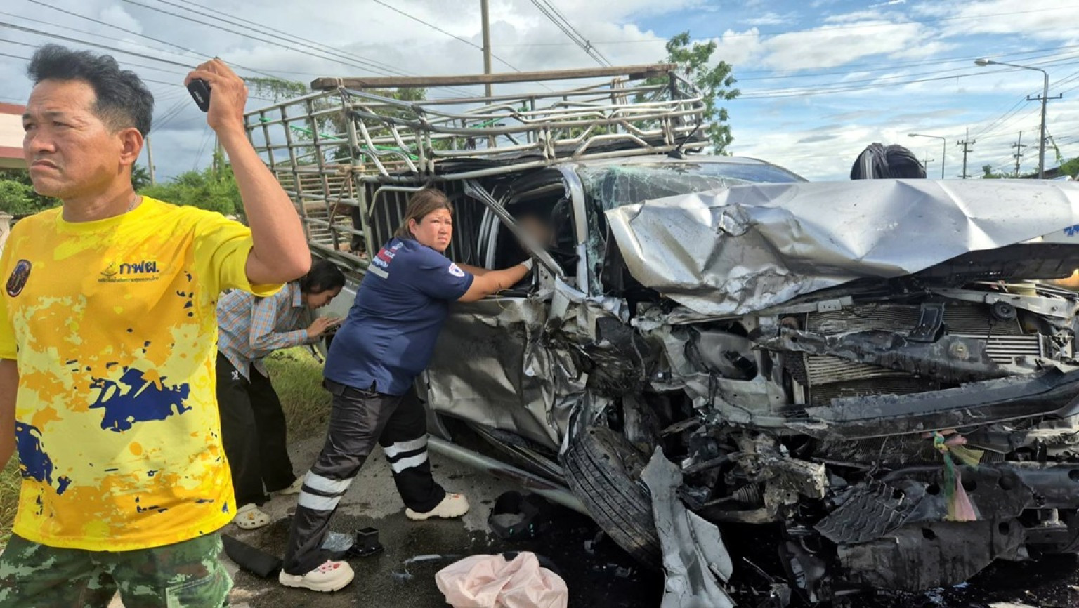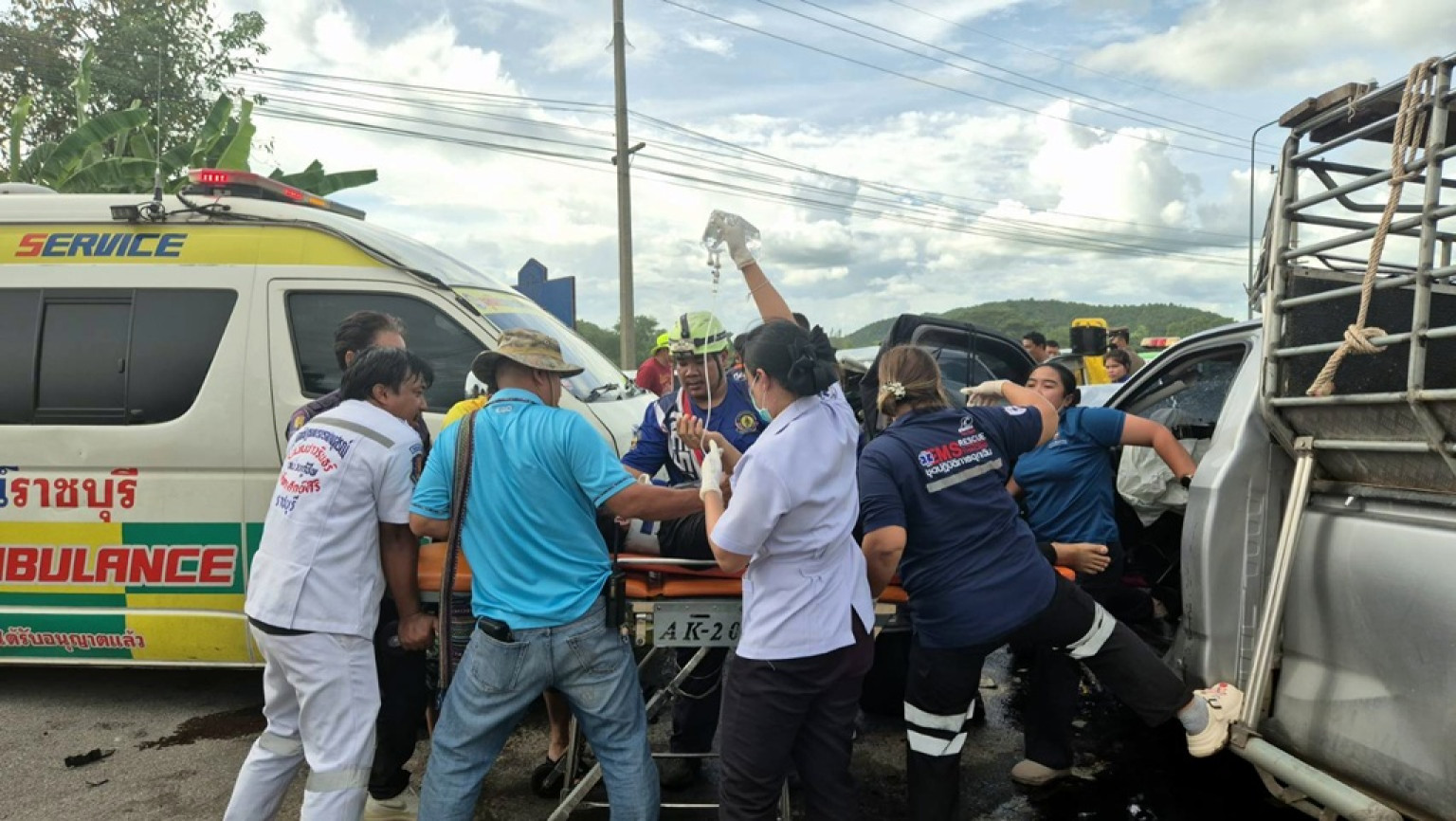 เมื่อเวลา 15.10 น. วันที่ 29 ก.ย.68 ร.ต.ท.เรืองวิทย์ ทัศนาลัย ร้อยเวรสภ.เมืองราชบุรี ได้รับแจ้งเหตุรถปิกอัพชนกับรถปิกอัพมีผู้ได้รับบาดเจ็บติดภายในรถหลายราย เหตุเกิดที่บริเวณถนนสายเขางู-เบิกไพร หมู่ 7 ต.เขาแร้ง อ.เมือง จ.ราชบุรี จึงเดินทางไปตรวจสอบพร้อมเจ้าหน้าที่มูลนิธิปฐมบรมราชานุสรณ์ราชบุรี เจ้าหน้าที่มูลนิธประชานุกูลราชบุรี และรถตัดถ่างในการนำผู้บาดเจ็บออกมา ในที่เกิดเหตุพบรถปิกอัพยี่ห้อ อีซูซุ สีบรอนซ์ ทะเบียนป้ายแดงสมุทรสงคราม ด้านหลังรถเป็นรถคอกบรรทุกวัวด้านหน้ารถพังยับเยินมีผู้ได้รับบาดเจ็บสาหัสติดอยู่ภายในซากรถ 1 คน ส่วนปิกอัพอีกคันยี่ห้อ โตโยต้า สีบรอนซ์ ทะเบียนกรุงเทพฯ สภาพหน้ารถพังยับเยินเช่นกันและมีผู้บาดเจ็บสาหัสติดอยู่ภายในซากรถ 1 คน เจ้าหน้าที่ต้องขอสนับสนุนเครื่องตัดถ่างจากหน่วยกู้ภัยสว่างราชบุรี มาเพิ่มอีกจำนวน 2 เครื่องและขอสนับสนุนหน่วยกู้ชีพจากเทศบาลตำบลเขางู หน่วยกู้ชีพจากเทศบาลตำบลเขาขวาง ให้มาช่วยในการดูแลผู้ได้รับบาดเจ็บในช่วงที่ต้องทำการตัดถ่างนำผู้บาดเจ็บออกมาซึ่งใช้เวลานานกว่า 30 นาที จึงสามารถตัดถ่างรถและผู้บาดเจ็บออกมาส่งโรงพยาบาลราชบุรีได้สำเร็จ ทราบชื่อคือนายธนนชัย (ขอสงวนนามสกุล) อายุ 34 ปี นายประสงค์ (ขอสงวนนามสกุล) อายุ 70 ปี