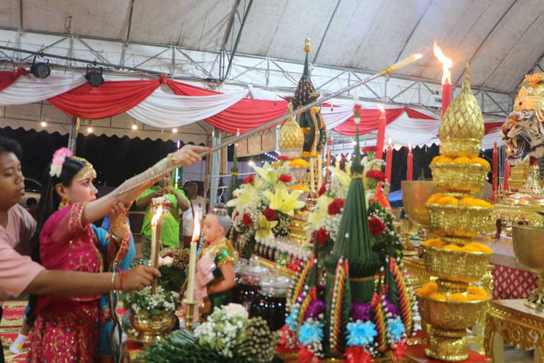ส่วนวันนี้ได้ฤกษ์งามยามดีฟ้าเปิดสว่างไสว หลังจากเมื่อคืนมีฝนตกหนักเกือบตลอดทั้งคืน มีลูกศิษย์และผู้ที่นับถือ เคยได้โชคลาภจากการเสี่ยงโชคลาภ และการขอพรจากบ่วงนาคบาศด้านต่าง ๆ เช่น เรื่องการค้าขายที่ดิน การประกอบอาชีพ การเลื่อนขั้นเลื่อนตำแหน่งหน้าที่การงาน และด้านการเสี่ยงโชคจากบ่วงนาคบาศผ่านติ๊กตอก หรือ มาขอพรด้วยตัวเอง ต่างเดินทางกันมาที่ทำพิธีนำบายศรีไหว้ครูบาอาจารย์ที่เคารพนับเพื่อความเป็นสิริมงคล ในงานได้มีผู้ถูกสลากรางวัลเมื่องวดที่ผ่านมา แต่งชุดไทยสวยงามมารำแก้บนถวายในงานพิธีดังกล่าว