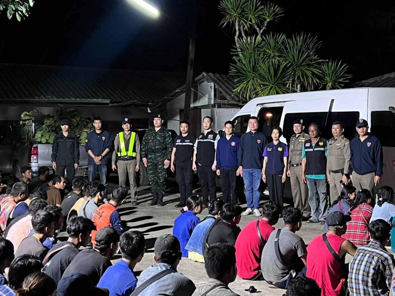 ผลการจับกุม พบแรงงานเมียนมา 90 คน ซุกซ่อนทั้งในรถกระบะคอกสีน้ำเงินที่พรางด้วยกองกล้วย, รถกระบะสีเทา, รถตู้สีขาว และรถกระบะตู้ทึบสีส้มที่ถูกดัดแปลงทำสีเลียนแบบรถของบริษัทขนส่งชื่อดังอย่างแนบเนียน โดยสามารถจับกุมผู้ต้องหา 2 ราย ส่วนอีก 2 รายอาศัยความมืดหลบหนีไปได้ อย่างไรก็ตามการจับกุมครั้งนี้ถือเป็นความสำเร็จจากการบูรณาการทุกภาคส่วน โดยเฉพาะการข่าวที่แม่นยำและการวางแผนปฏิบัติการอย่างรัดกุม พร้อมย้ำว่าจะขยายผลถึงตัวการใหญ่ และเดินหน้าปราบปรามขบวนการค้ามนุษย์ทุกรูปแบบอย่างจริงจัง แรงงานทั้งหมดถูกดำเนินคดีข้อหาเข้ามาในราชอาณาจักรโดยไม่ได้รับอนุญาต ส่วนผู้ต้องหาที่ถูกจับกุมถูกแจ้งข้อหาช่วยเหลือและซ่อนเร้นบุคคลต่างด้าว ขณะที่เจ้าหน้าที่อยู่ระหว่างเร่งติดตามตัวผู้ร่วมขบวนการที่ยังหลบหนีมาดำเนินคดีตามกฎหมายต่อไป