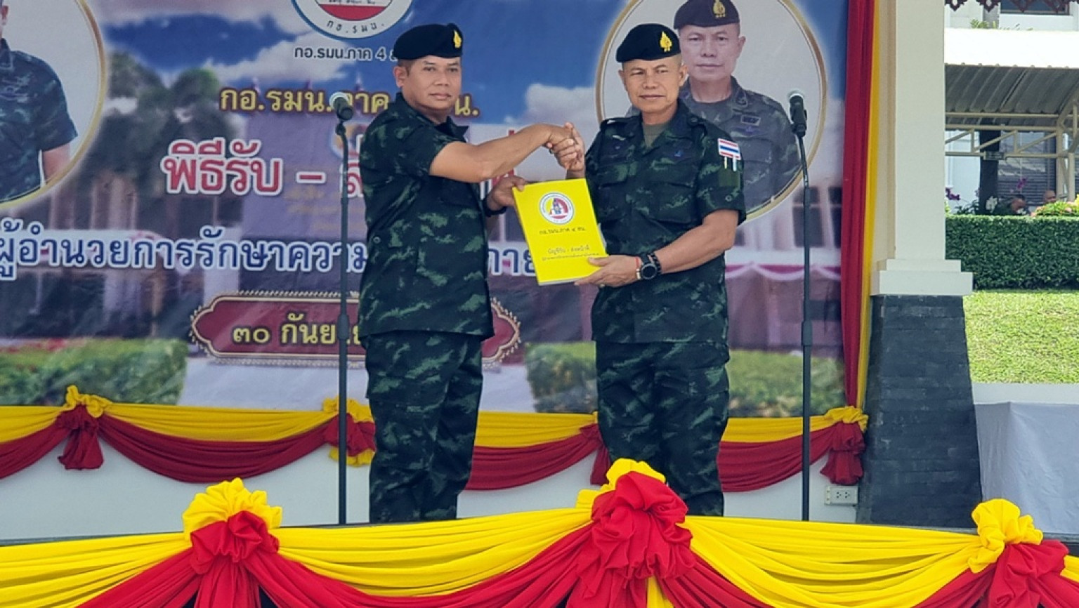 วันที่ 30 ก.ย.68 ที่ศาลาพิณประเสริฐ กองอำนวยการรักษาความมั่นคงภายในภาค 4 ส่วนหน้า ค่ายสิรินธร ตำบลเขาตูม อำเภอยะรัง จังหวัดปัตตานี พลโท ไพศาล หนูสังข์ แม่ทัพภาคที่ 4/ผู้อำนวยการรักษาความมั่นคงภายในภาค 4 (ท่านเก่า) ซึ่งได้รับพระกรุณาโปรดเกล้าฯ ให้ดำรงตำแหน่งสูงขึ้นเป็นที่ปรึกษาพิเศษกองทัพบก ได้กระทำพิธีส่งมอบตำแหน่งผู้อำนวยการรักษาความมั่นคงภายในภาค 4 ให้แก่ พลตรี นรธิป โพยนอก แม่ทัพภาคที่ 4/ผู้อำนวยการรักษาความมั่นคงภายในภาค 4 (ท่านใหม่) โดยมีพิธีถวายสักการะสิ่งศักดิ์สิทธิ์ภายในค่ายสิรินธร การส่งมอบธงประจำหน่วย และเอกสารรับ–ส่งหน้าที่อย่างสมเกียรติ ท่ามกลางผู้บังคับบัญชาระดับสูง นายทหารชั้นผู้ใหญ่ ผู้บังคับหน่วยขึ้นตรง หัวหน้าส่วนราชการ และกำลังพลในสังกัดเข้าร่วมพิธีอย่างพร้อมเพรียง