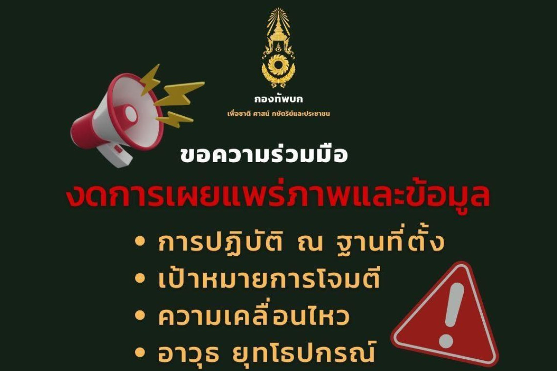 เมื่อวันที่ 30 กันยายน 2568 เพจเฟซบุ๊ก "กองทัพบก Royal Thai Army" รายงานว่า "ขอความร่วมมืองดการเผยแพร่ภาพและข้อมูล ที่อาจส่งผลกระทบกับผู้ปฏิบัติหน้าที่และเพื่อความปลอดภัยของ กำลังพลและที่ตั้งทางทหาร"
