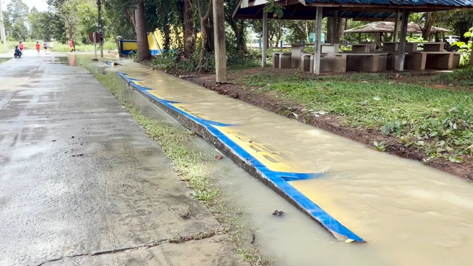 วันที่ 30 ก.ย.68 ผู้สื่อข่าวรายงานว่า หลังจากที่ฝนตกหนักติดต่อกันหลายวัน ทำให้มวลน้ำจากเทือกเขาพนมดงรัก ชายแดนไทย-กัมพูชา และลำน้ำจากเขื่อนอ่างเก็บน้ำห้วยขนาดมอญ ต.ตาตุม อ.สังขะ จ.สุรินทร์ ไหลหลากเข้ามาท่วมนาข้าว พืชเกษตรและบ้านเรือนชาวบ้านหลายหมู่บ้าน ตำบล ในเขตพื้นที่ลุ่มทางน้ำไหล โดยที่โรงเรียนบ้านจารย์ ต.จารย์ อ.สังขะ พบว่า รั้วกำแพงโรงเรียนถูกมวลน้ำซัดล้มพังทั้งแถบความยาวประมาณ 30 เมตร (มีคลิปขณะกำแพงล้ม)ช่วงเย็นเมื่อวานที่ผ่านมา ซึ่งวันนี้น้ำได้ลดลงบางแล้วแต่ยังมีท่วมขังภายในโรงเรียนอยู่ ทางโรงเรียนจึงสั่งหยุดเรียนไว้ก่อนเพื่อรอดูสถานการณ์ สอบถามชาวบ้านที่มาหว่านแหบริเวณนั้น บอกว่า เมื่อวานน้ำท่วมสูงระดับเลยเข่า ทำให้กำแพงล้มพัง เป็นน้ำที่ไหลมาจากเขื่อนอ่างเก็บน้ำขนดมอญ แต่วันนี้น้ำลดลงแล้ว หากฝนไม่ตกลงมาซ้ำอีกคงกลับสู่ภาวะปกติ