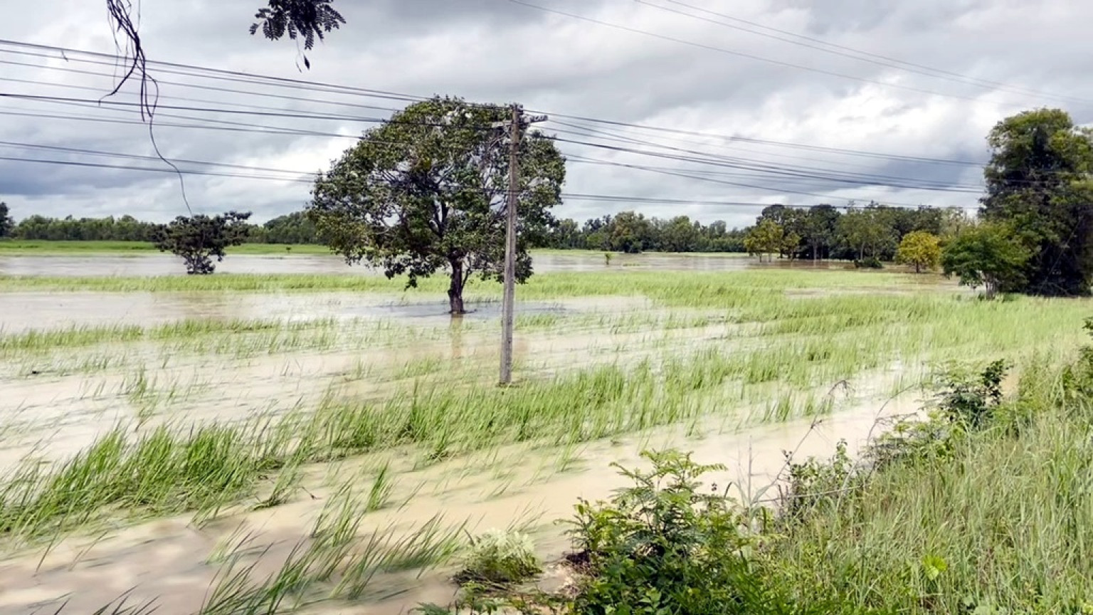 ถึงแม้ภายในหมู่บ้านน้ำจะเริ่มลด แต่ยังคงเหลือท่วมพื้นที่นาข้าวตามพื้นที่ลุ่มระดับน้ำยังคงท่วมสูงมิดต้นข้าวอยู่ หากน้ำยังไม่ลดภายใน 2-3 วันนี้ อาจส่งผลทำให้รวงข้าวที่กำลังตั้งท้องออกรวงเสียหายได้ นอกจากนั้นในพื้นที่ตำบลตาตุม มวลน้ำที่ไหลหลากยังได้กัดเซาะคอสะพานจนเป็นโพรงด้านล่าง จนท.ทางหลวง และ จนท.อบต.ต้องเร่งซ่อมแซมเพื่อให้ประชาชนสัญจรไป-มา ปลอดภัย