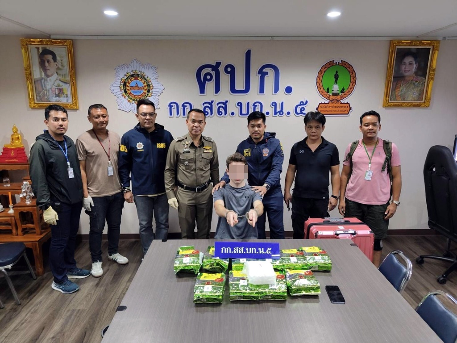 วันที่ 30 ก.ย.68 ที่สืบนครบาล 5 พ.ต.อ.ศิรณวิชญ์ อินทร ผกก.สส.บก.น.5, พ.ต.อ.ยิ่งยศ สุวรรณโณ ผกก.สน.ลุมพินี , พ.ต.ท.อติชาต แย้มผกา, พ.ต.ท.มาโนชย์ ทองแก้ว, พ.ต.ท.ภราดร สุวรรณรัตน์, รอง ผกก.สส.บก.น.5,พ.ต.ท.สุดเขต สิมาธรรม รอง ผกก.สส.สน.ลุมพินี, พ.ต.ท.วิสูตร เต็งเฉี้ยง , พ.ต.ท.สง่า สุวรรณเพชร สว.กก.สส.บก.น.5ได้สั่งการให้เจ้าหน้าที่ตำรวจ กก.สส.บก.น.5 จับกุม MR.WILSON อายุ 23 ปี สัญชาติอังกฤษ พร้อมของกลาง ยาไอซ์ น้ำหนักรวม 9,152.3 กรัม โดยกล่าวหาว่าว่า “จำหน่ายยาเสพติดให้โทษประเภท 1 (เมทแอมเฟตามีน หรือยาไอซ์) โดยการมีไว้เพื่อจำหน่ายโดยฝ่าฝืนต่อกฎหมาย อันเป็นการกระทำเพื่อการค้า เป็นการก่อให้เกิดการแพร่กระจายในกลุ่มประชาชน”