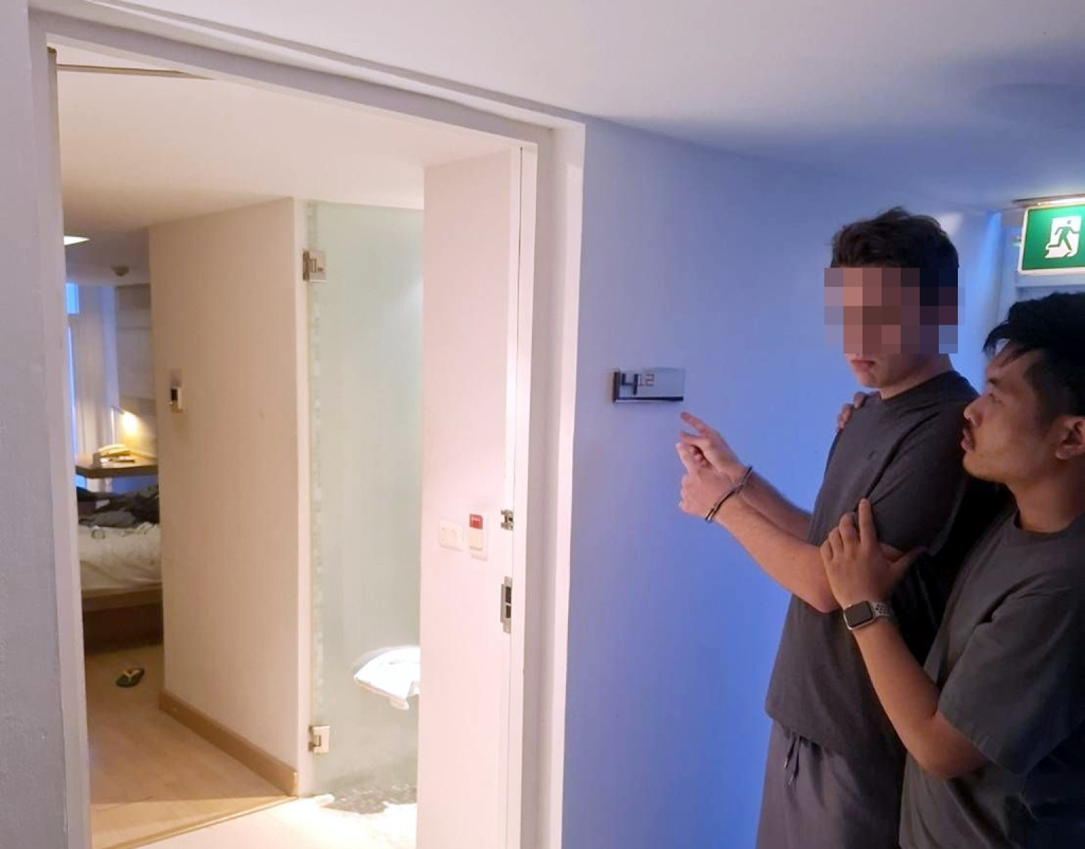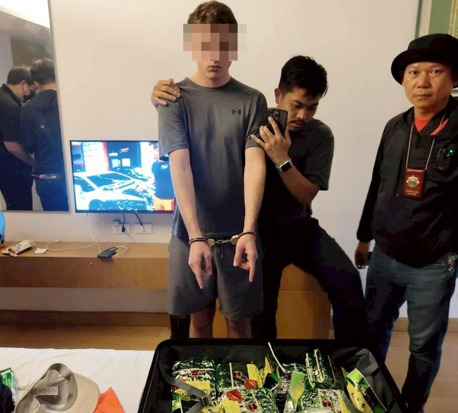 สืบเนื่องจากเจ้าหน้าที่ตำรวจชุดจับกุมได้ รับแจ้งจากสายลับว่ามี ชายชาวต่างชาติ จะนำยาเสพติดให้โทษประเภท 1 (เมทแอมเฟตามีน หรือยาไอซ์) โดยใส่ไว้ในกระเป๋าเดินทางสีชมพูขนาดใหญ่แบบมีล้อลาก มาพักที่โรงแรมแห่งหนึ่ง ในซอยสุขุมวิท 11 ถนนสุขุมวิท แขวงคลองตันเหนือ เขตวัฒนา กรุงเทพมหานคร เพื่อรอส่งให้กับลูกค้า จึงได้รายงานผู้บังคับบัญชาทราบ และเดินทางไปตรวจสอบสถานที่ดังกล่าว สอบถามพนักงานโรงแรมว่า ได้มีชายชาวต่างชาติลักษณะตามที่ได้รับแจ้งจากสายลับมาเปิดห้องพักดังกล่าวจริง เจ้าหน้าที่ตำรวจจึงได้ขอตรวจสอบภาพจากกล้องวงจรปิด พบชายชาวต่างชาติลักษณะตรงตามที่สายลับแจ้ง ได้เข้ามาเปิดห้องเลขที่ 412 ชั้น 4 โรงแรมซอยสุขุมวิท 11 ถนนสุขุมวิท แขวงคลองตันเหนือ เขตวัฒนา กรุงเทพมหานคร เจ้าหน้าที่ตำรวจจึงนำภาพจากกล้องวงจรปิดให้สายลับดู รับว่าคือชายชาวต่างชาติที่นำยาเสพติดให้โทษประเภท 1 (เมทแอมเฟตามีน หรือยาไอซ์) มาพักไว้เพื่อส่งต่อให้ลูกค้าจริง เหตุแห่งการตรวจค้นเนื่องจากเป็นคดียาเสพติดและมีเหตุสงสัยว่าภายในห้องพักของผู้ต้องหาอาจมียาเสพติดซุกซ่อนอยู่ และมีความจำเป็นเร่งด่วนที่ไม่อาจขอหมายค้นได้ทัน เกรงว่าของกลางยาเสพติดอาจจะถูกโยกย้าย ทำลาย หรือถูกกระทำด้วยวิธีการอื่นใด เจ้าหน้าที่ตำรวจจึงได้อาศัยอำนาจเจ้าพนักงาน ป.ป.ส. ขอเข้าทำการตรวจค้นห้องพักของชายชาวต่างชาติคนดังกล่าว เนื่องด้วยมีเหตุอันควรสงสัยว่าได้กระทำความผิดเกี่ยวกับยาเสพติด โดยมีพนักงานของโรงแรมร่วมไปตรวจสอบห้องพักดังกล่าวด้วย
