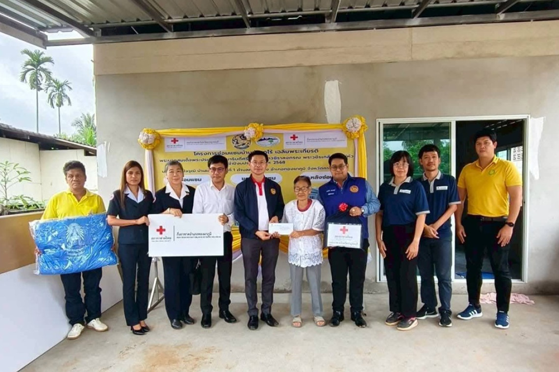 วันที่ 30 ก.ย.68 นางสาวกิตติยา จึงรุ่งเจริญกิจ นายกเหล่ากาชาดจังหวัดกาญจนบุรี มอบหมายให้ นายชาคริต ตันพิรุฬห์ นายอำเภอทองผาภูมิ ในฐานะนายกกิ่งกาชาดอำเภอทองผาภูมิ พร้อมคณะ ร่วมทำพิธีส่งมอบบ้านที่ได้รับการซ่อมแซมแล้ว ให้กับ นายวันชัย ใจวุฒิ ผู้ยากไร้ ในพื้นที่หมู่ 1 ตำบลห้วยเขย่ง อำเภอทองผาภูมิ จังหวัดกาญจนบุรี
