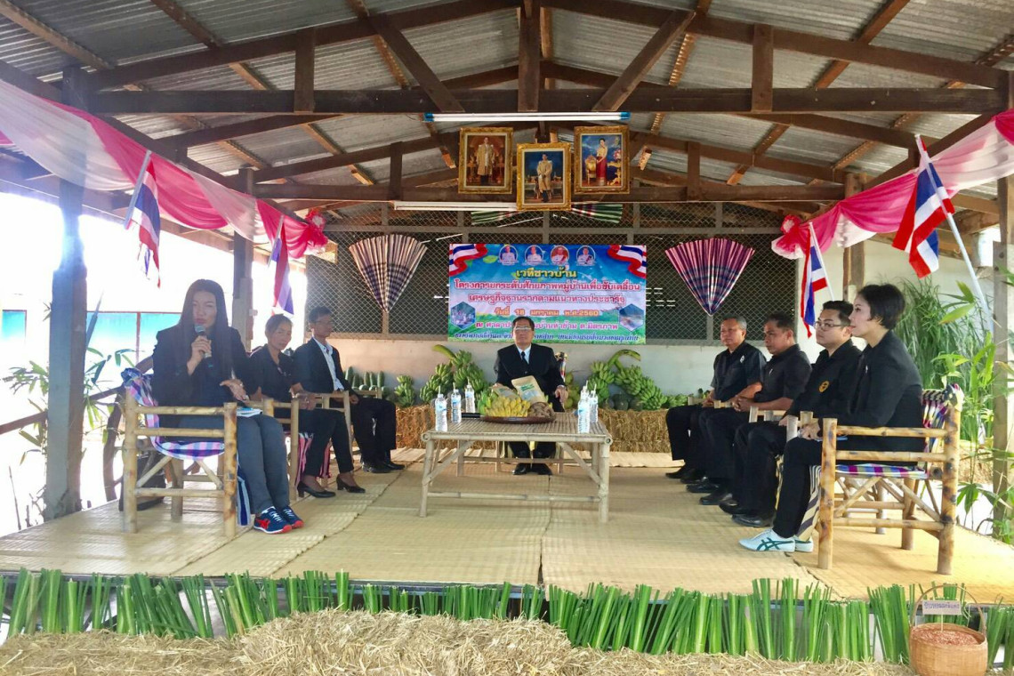 ขณะที่ในส่วนของเวทีชาวบ้าน น.ส.สุภาพ แสนมี ตัวแทนกรมการปกครอง กล่าวว่า โครงการนี้ริเริ่มโดยกระทรวงการคลัง แต่ปัญหา คือ กระทรวงการคลังไม่มีกลไกที่จะรับผิดชอบรับงานนี้ไปสู่การปฏิบัติ ครม.จึงพิจารณาและเล็งเห็นว่า กระทรวงมหาดไทย มีกลไกตั้งแต่ระดับจังหวัด อำเภอ ตำบล สุดท้ายคือ หมู่บ้าน โดยให้กระทรวงมหาดไทยไปหารือกับ กรมบัญชีกลาง และ สำนักงบประมาณ ว่าจะพิจารณาโครงการที่นำไปสู่การกระตุ้นเศรษฐกิจให้เกิดประโยชน์ต่อพี่น้องประชาชนมากที่สุดได้อย่างไร จึงได้ชื่อโครงการว่า "โครงการยกระดับศักยภาพหมู่บ้านเพื่อขับเคลื่อนเศรษฐกิจฐานรากตามแนวทางประชารัฐ" ซึ่งจะทำให้ประชาชนมีศักยภาพในการช่วยเหลือตัวเอง แก้ปัญหาด้วยตัวเอง และก้าวไปสู่ความมั่นคงอย่างยั่งยืน ตามที่รัฐบาลได้ตั้งเป้าหมายไว้ในยุทธศาสตร์ชาติ 20 ปี
