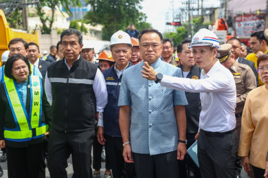 ด่วน!"นายกฯอนุทิน" รุดตรวจถนนสามเสน หน้าวชิรพยาบาลทรุด ขึ้นตึกดูมุมสูง ก่อนประชุมวอร์รูม