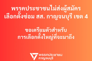 "พรรคประชาชน" ไม่ส่งผู้สมัครลงชิงศึกเลือกตั้งซ่อม กาญจนบุรี เขต 4 เตรียมลุยสนามใหญ่