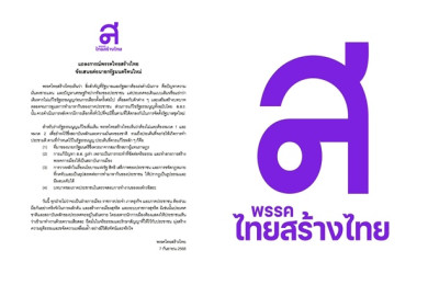 "ไทยสร้างไทย" ยื่นข้อเสนอ "นายกฯคนใหม่" เร่งแก้ปัญหาความมั่นคงชายแดน-เศรษฐกิจ-แก้รธน.ก่อนเลือกตั้ง