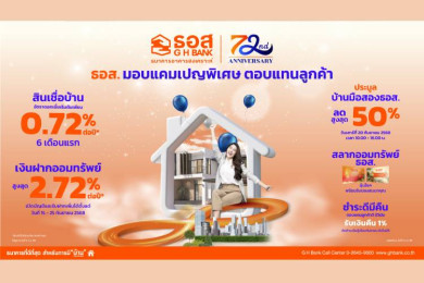 ธอส. ฉลองครบ 6 รอบ 72 ปี จัดเต็มแคมเปญพิเศษตอบแทนลูกค้า นำโดยสินเชื่อบ้านดอกเบี้ยต่ำ 0.72% ต่อปี