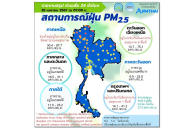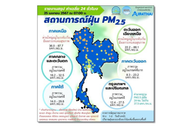 เช้านี้พบ 9 จังหวัด เหนือ- อีสาน ยังจมฝุ่น PM2.5 มีผลกระทบต่อสุขภาพ กทม.คุณภาพอากาศปานกลางไปจนถึงดี