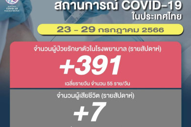 ยอดโควิดไทยรอบ 7 วัน พบติดเชื้อใหม่ 391 ราย ตาย 7 ราย